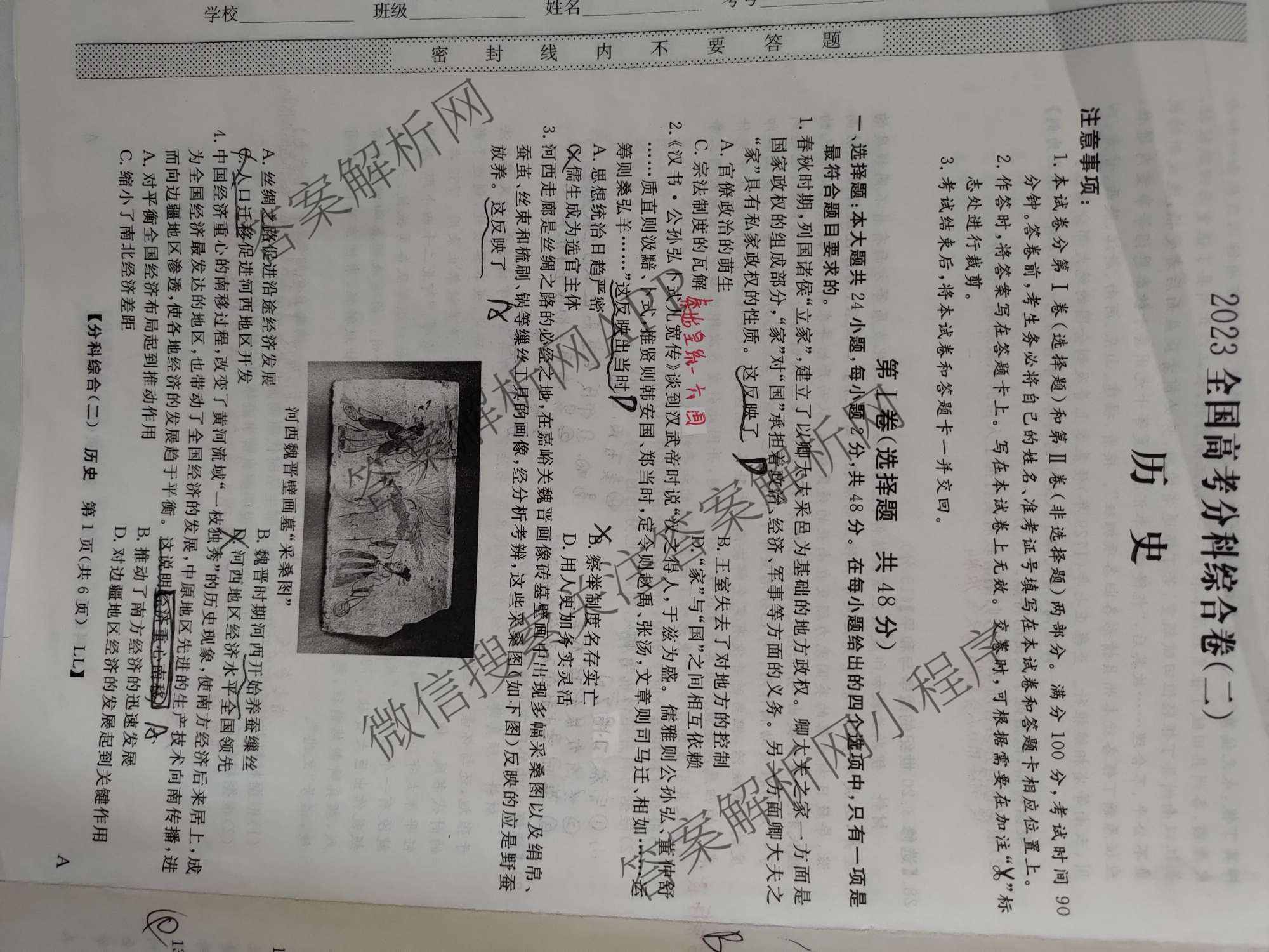 - [高三]2023[全国高考分科综合卷] 历史 LL A(二)2试题