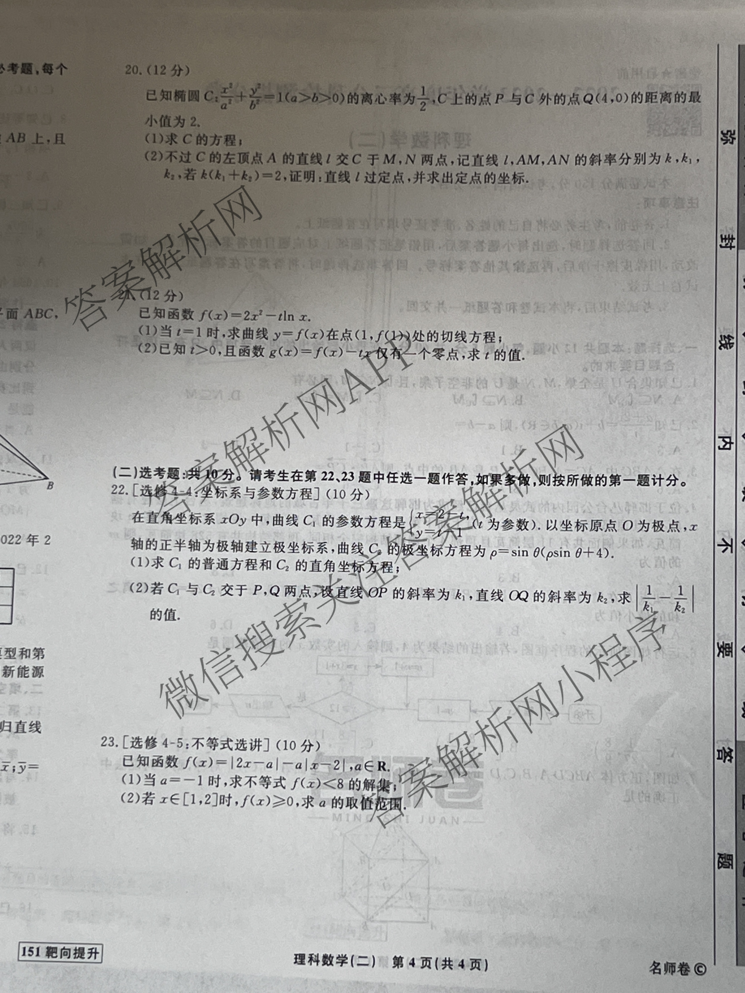 - 2022-2023[衡水名师卷]学年度[高三]分科检测提分卷151靶向提升(老高考)理数(二)2试题