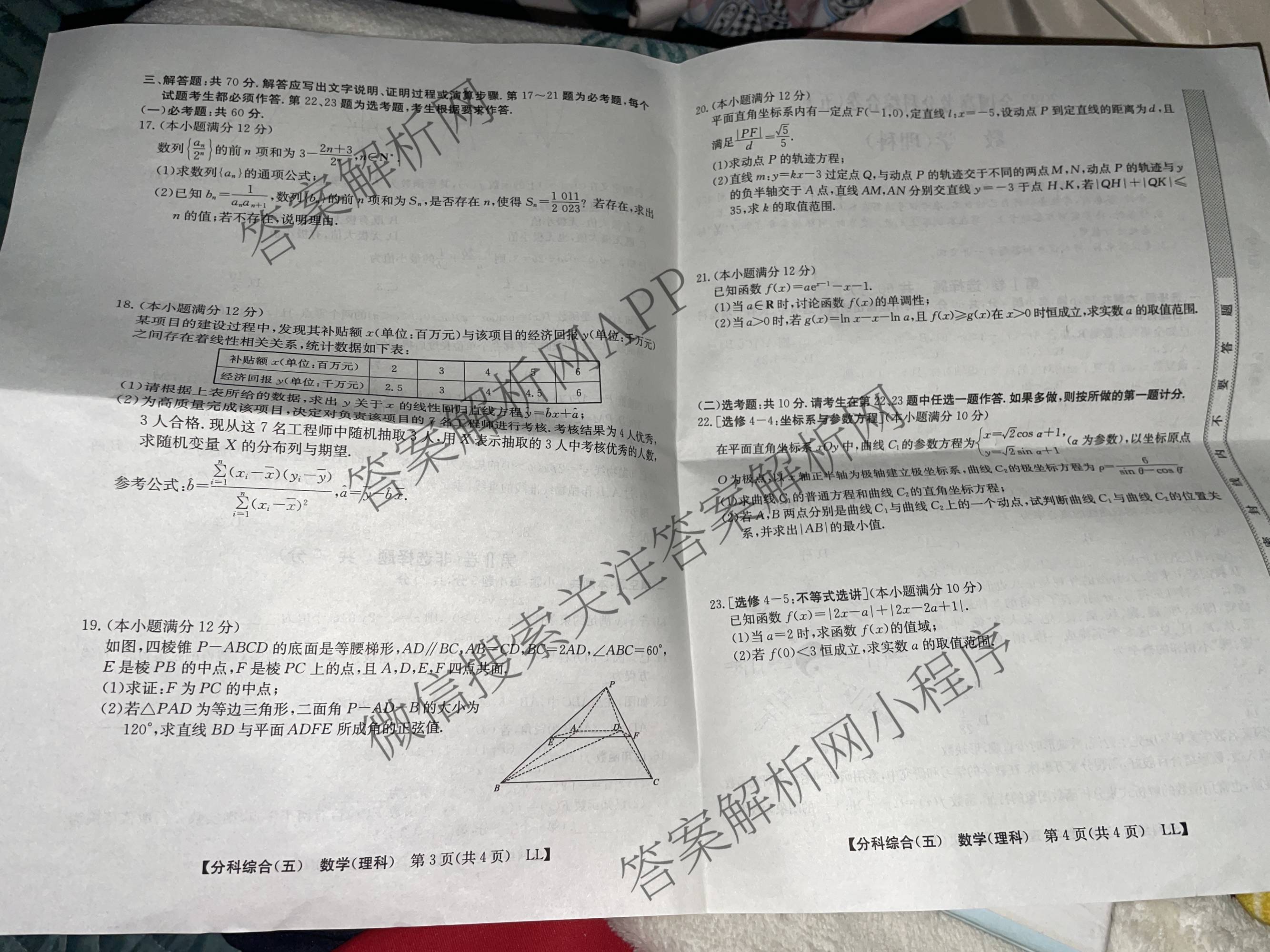 - 2023[全国高考分科综合卷] 理数 LL (五)5答案