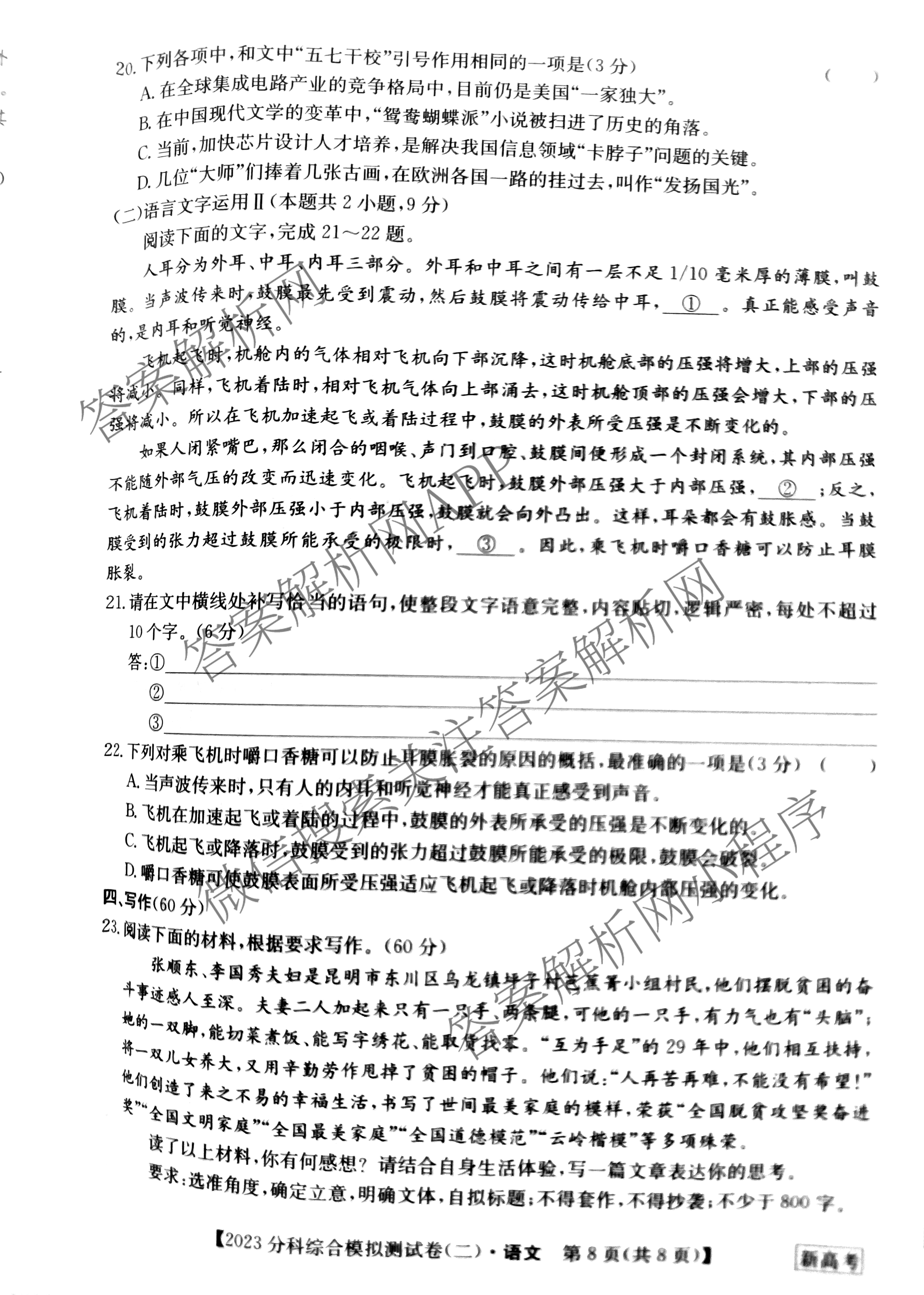 (高三)2023届全国新高考分科综合模拟测试卷语文(二)2试题