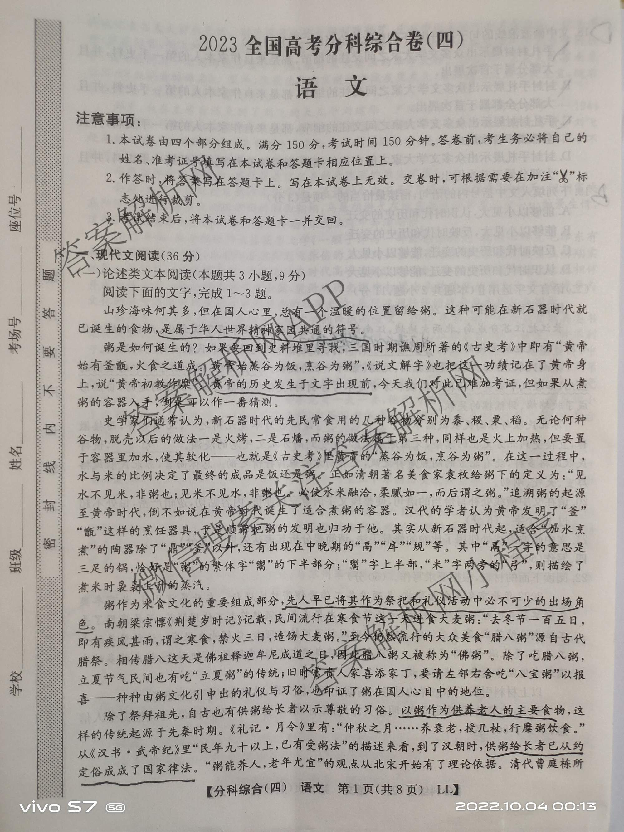 - [高三]2023(全国高考分科综合卷) 语文 LL (四)4试题