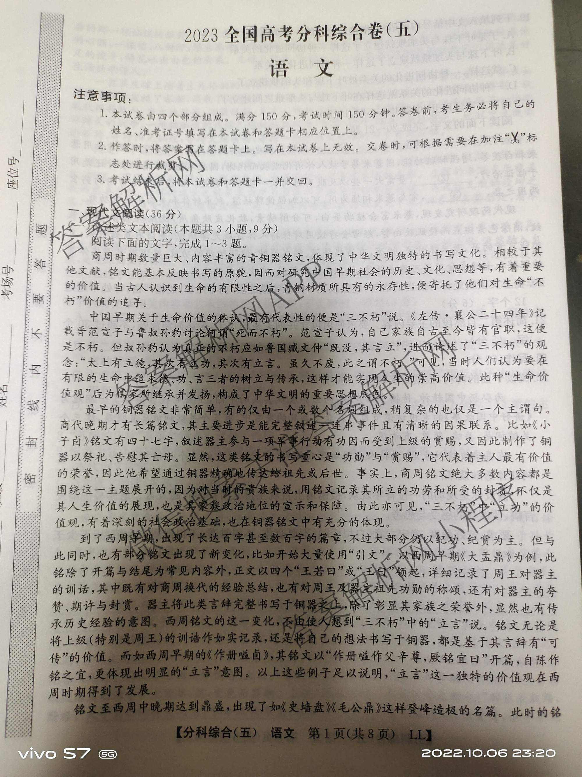 - [高三]2023[全国高考分科综合卷] 语文 LL (五)5试题