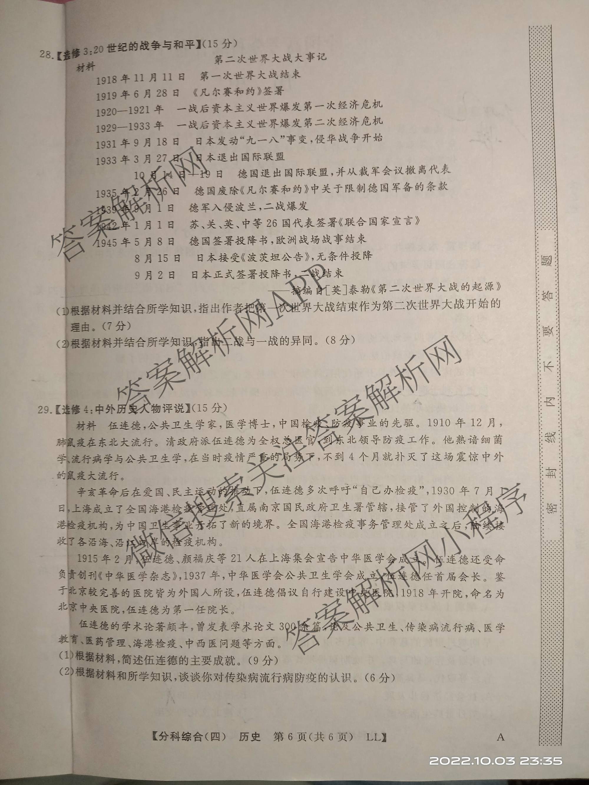 2023全国高考分科综合卷 历史 LL A(四)4试题,目前分科卷答案网已经汇总了2023全国高考分科综合卷 历史 LL A(四)4试题的各科答案和试卷,获取更多全国高考分科综合卷答案解析,请在关注本站。