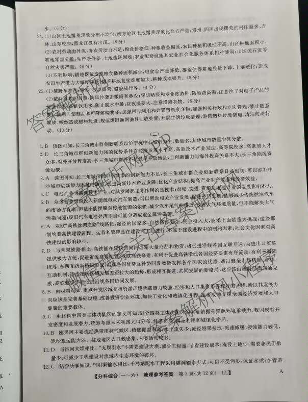 - 2023[全国高考分科综合卷] 地理 LL A(一)1答案