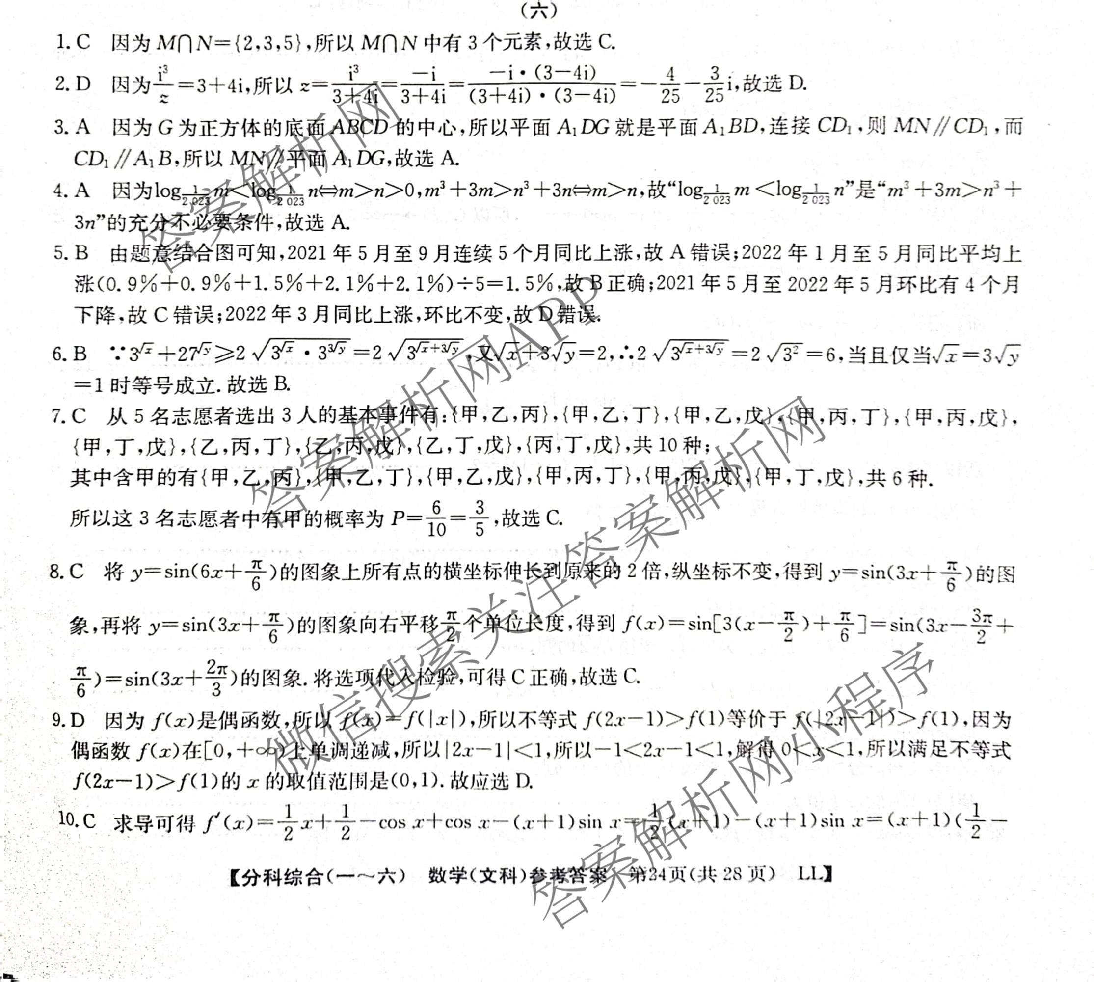 2023(全国高考分科综合卷) 文数 LL (六)6答案