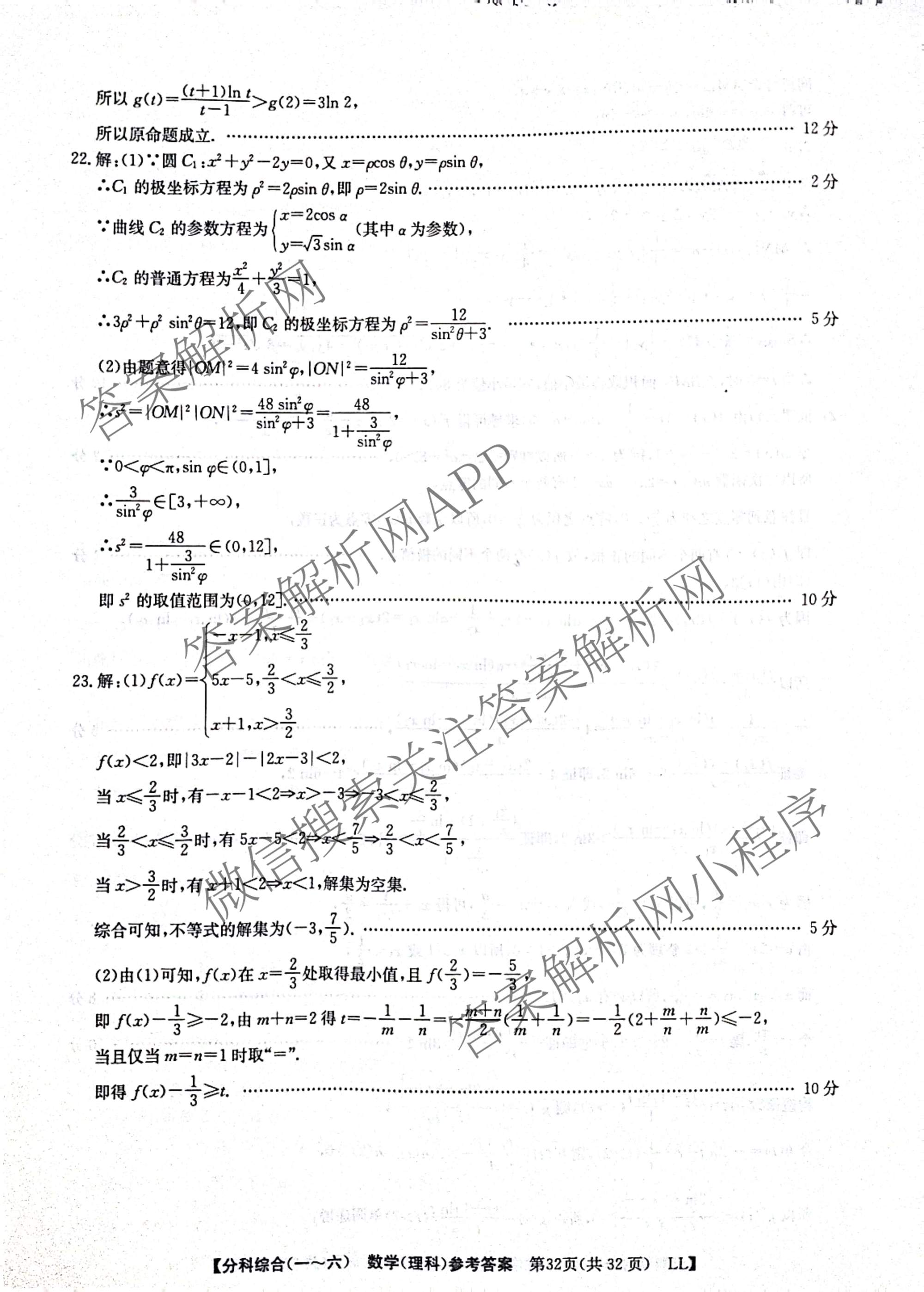 2023(全国高考分科综合卷) 理数 LL (六)6答案