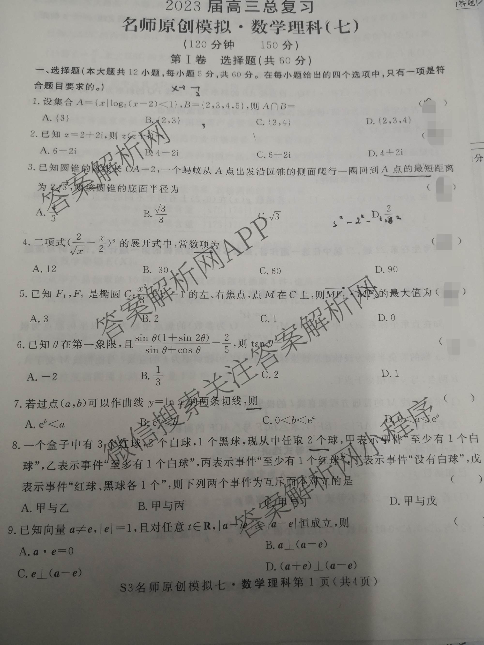2023届高三总复习·S3名师原创模拟理数(七)7试题,目前分科卷答案网已经汇总了2023届高三总复习·S3名师原创模拟理数(七)7试题的各科答案和试卷,获取更多高三总复习·名师原创模拟答案解析,请在关注本站。