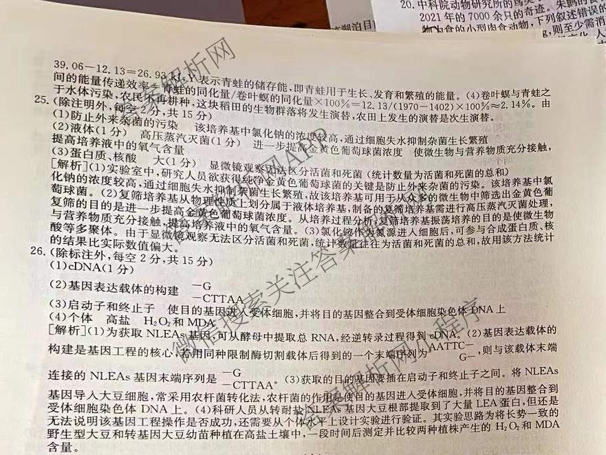 - [高三]2023(全国高考分科综合卷) 生物 LL B((五)5答案