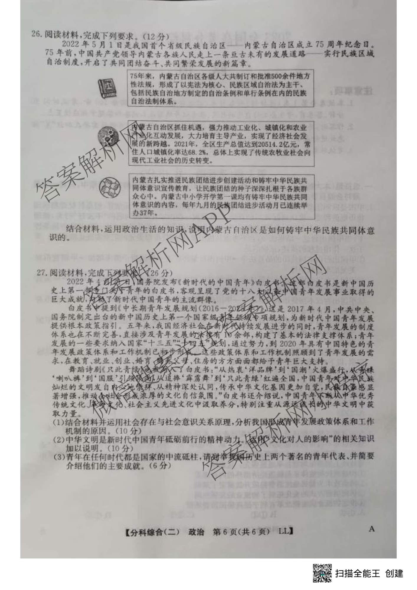 2023(全国高考分科综合卷) 政治 LL A(二)2试题