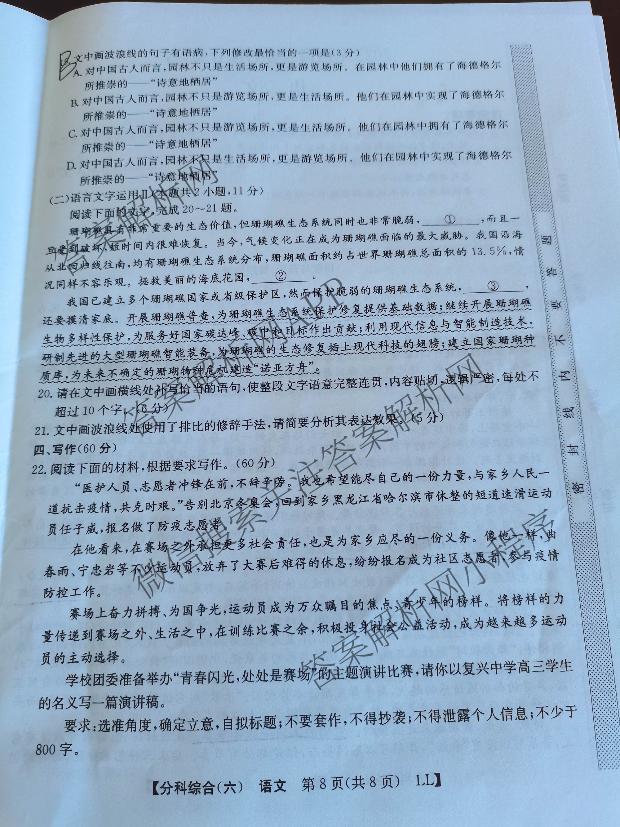 2023[全国高考分科综合卷] 语文 LL (六)6试题