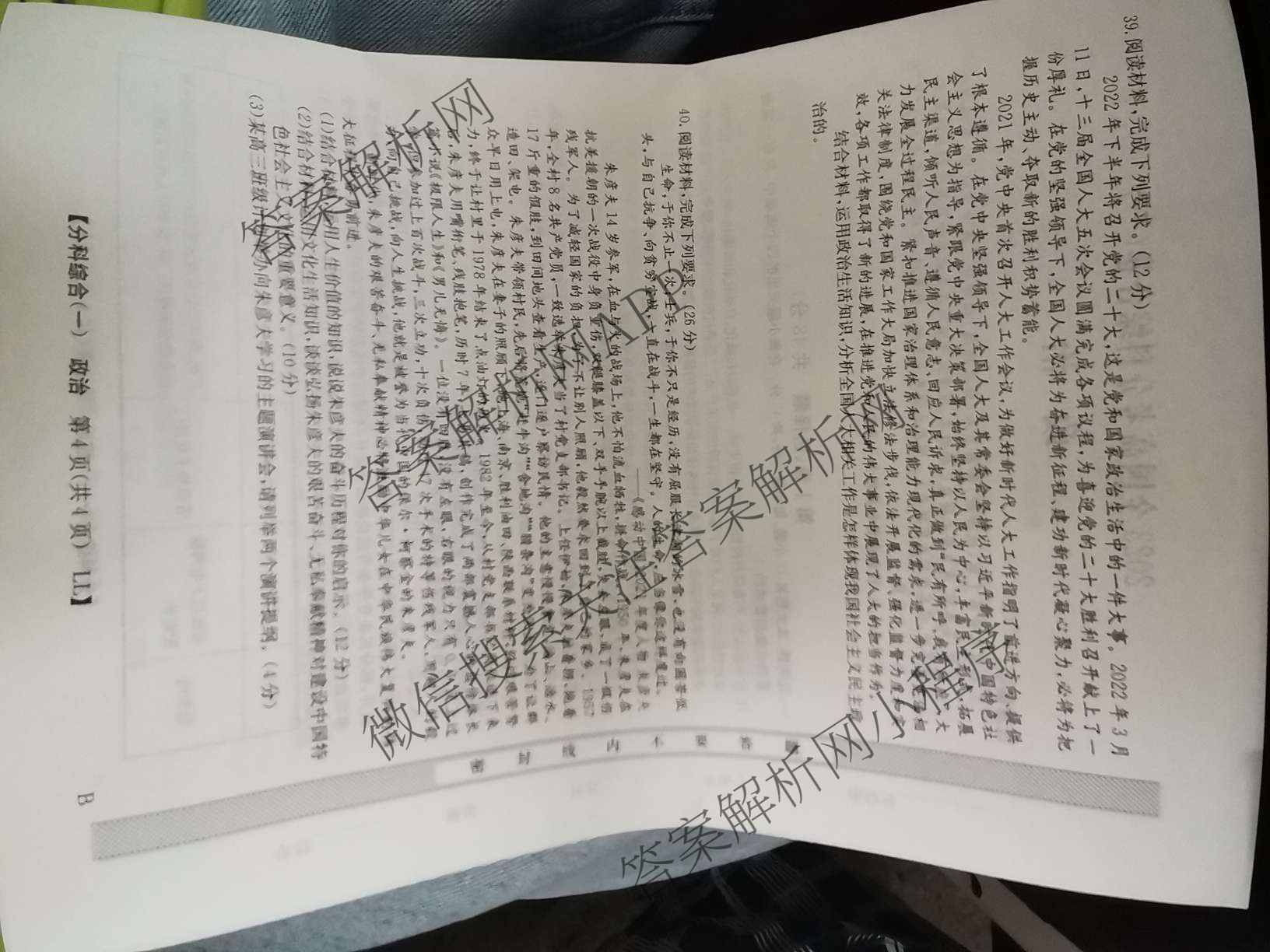 - [高三]2023(全国高考分科综合卷) 政治 LL B(一)1试题