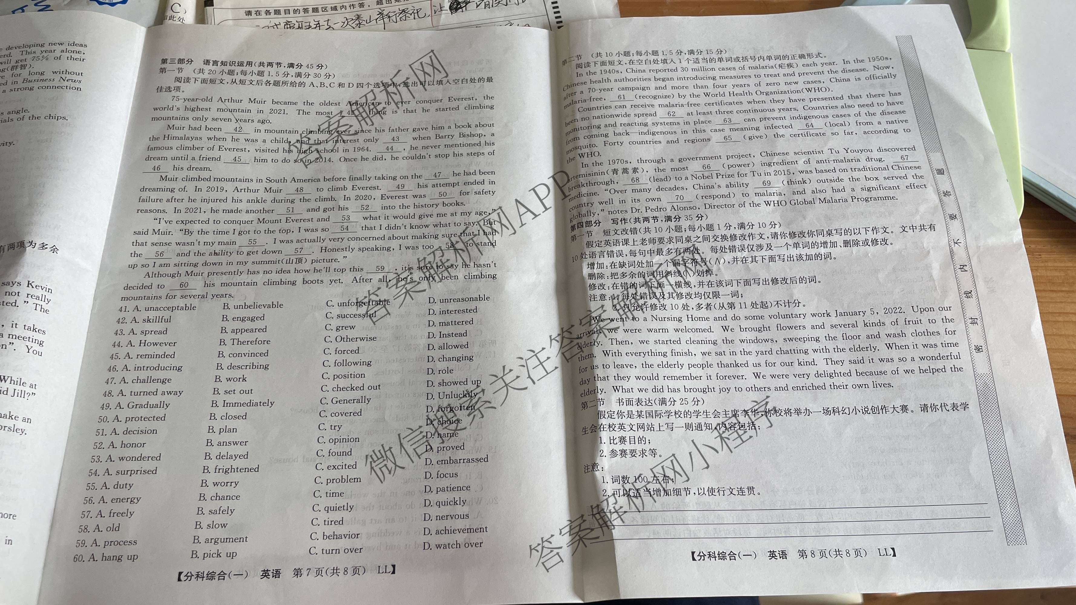 2023全国高考分科综合卷 英语 LL (一)1试题,目前分科卷答案网已经汇总了2023全国高考分科综合卷 英语 LL (一)1试题的各科答案和试卷,获取更多全国高考分科综合卷答案解析,请在关注本站。