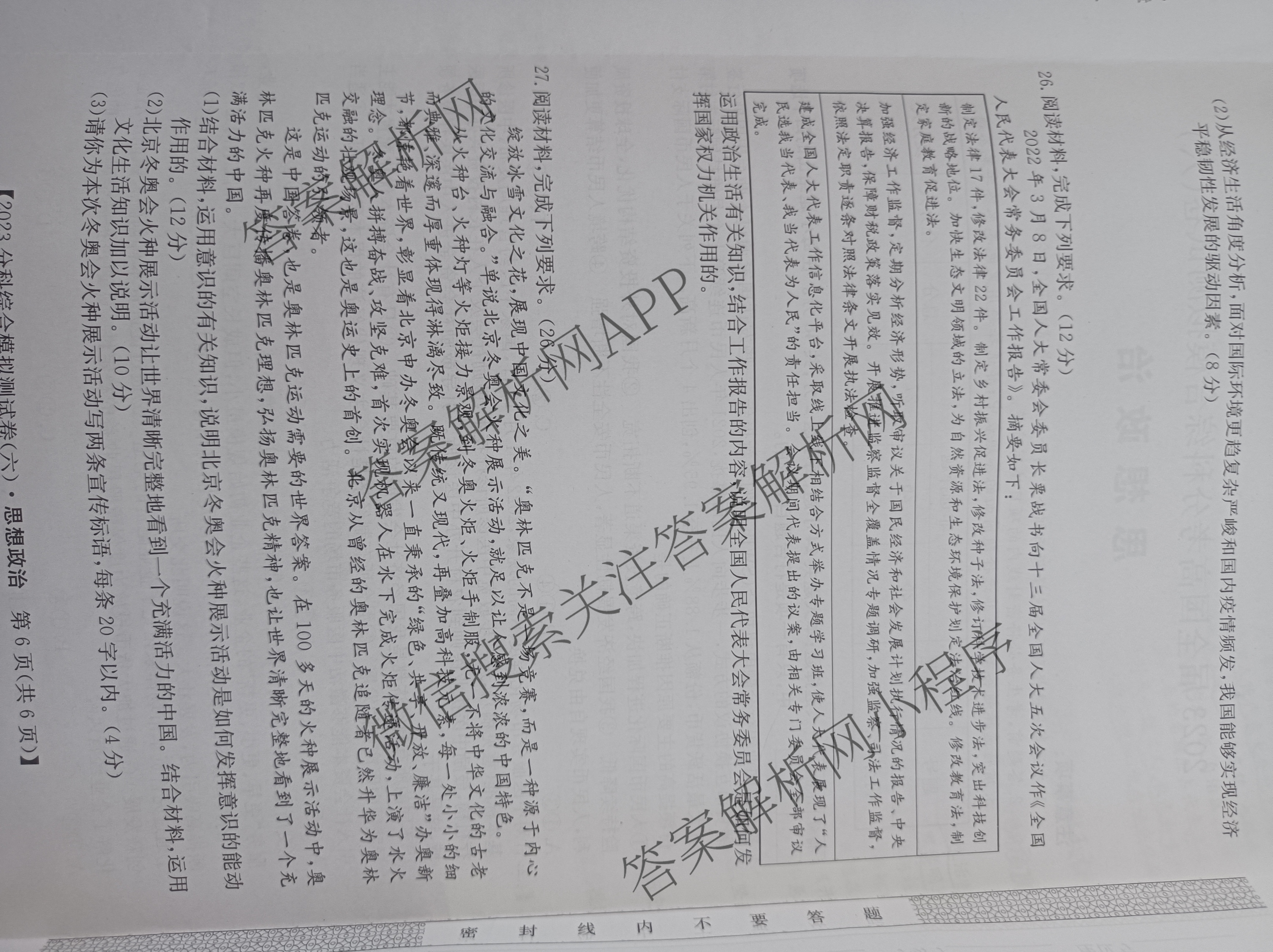 2023届全国高考分科综合模拟测试卷(六)6 老高考 政治试题,目前分科卷答案网已经汇总了2023届全国高考分科综合模拟测试卷(六)6 老高考 政治试题的各科答案和试卷,获取更多全国高考分科综合模拟测试卷答案解析,请在关注本站。