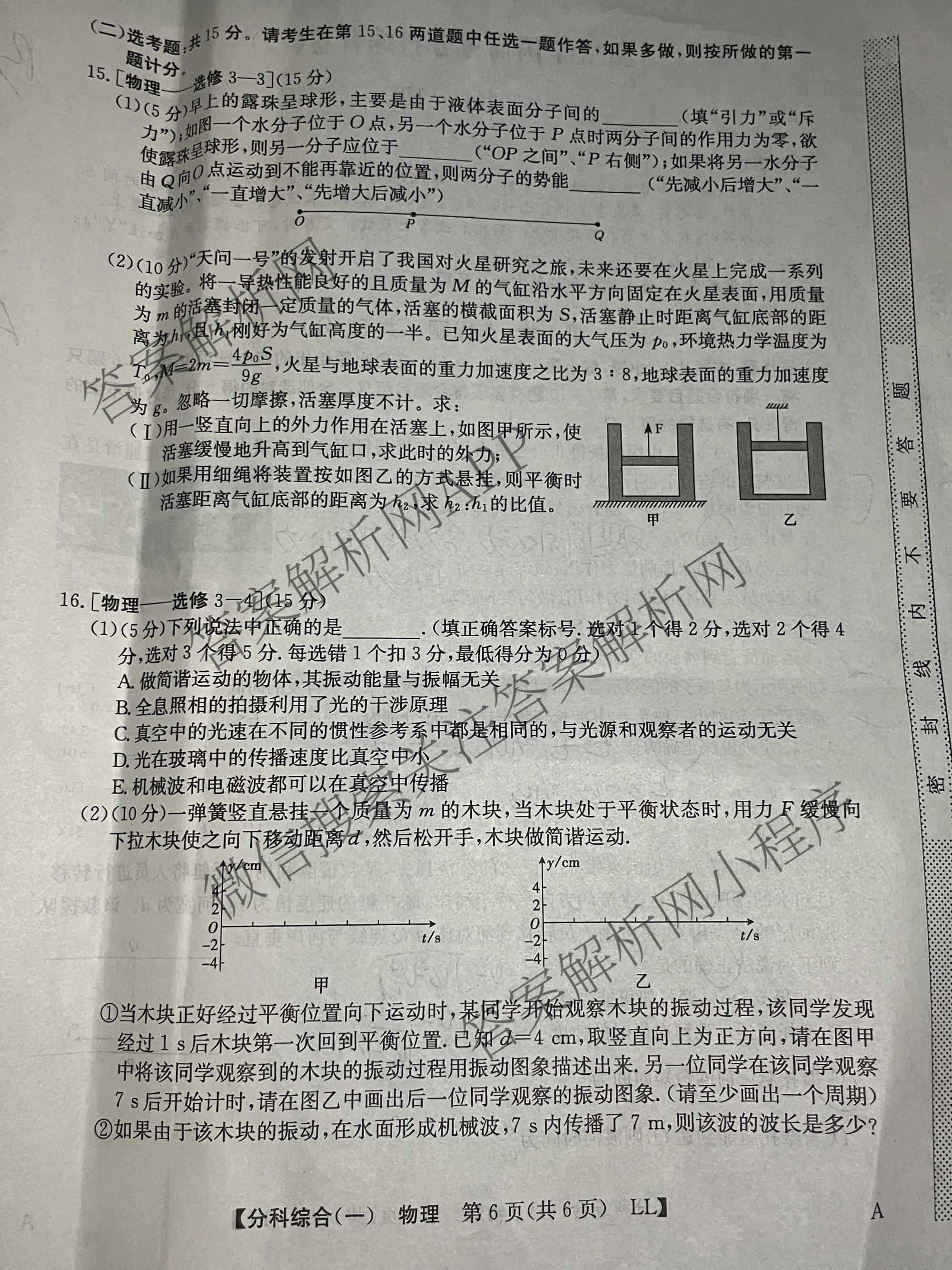 [高三]2023(全国高考分科综合卷) 物理 LL A(一)1试题