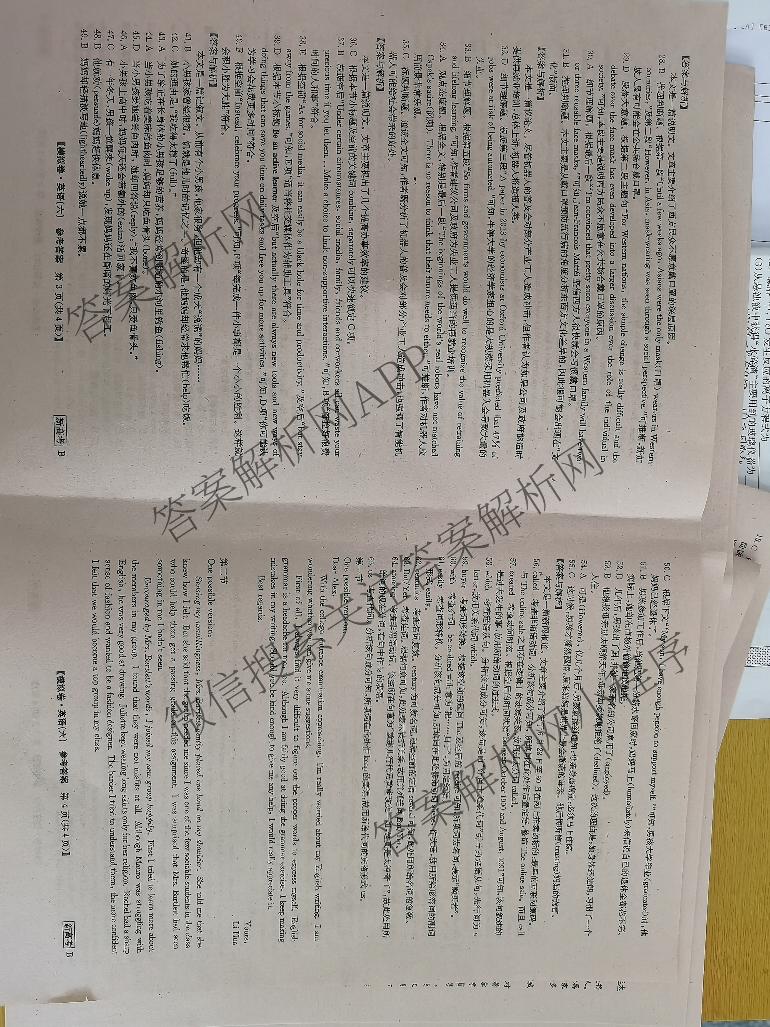 - [高三]2023届[全国高考分科综合模拟测试卷](六)6 老高考 英语答案