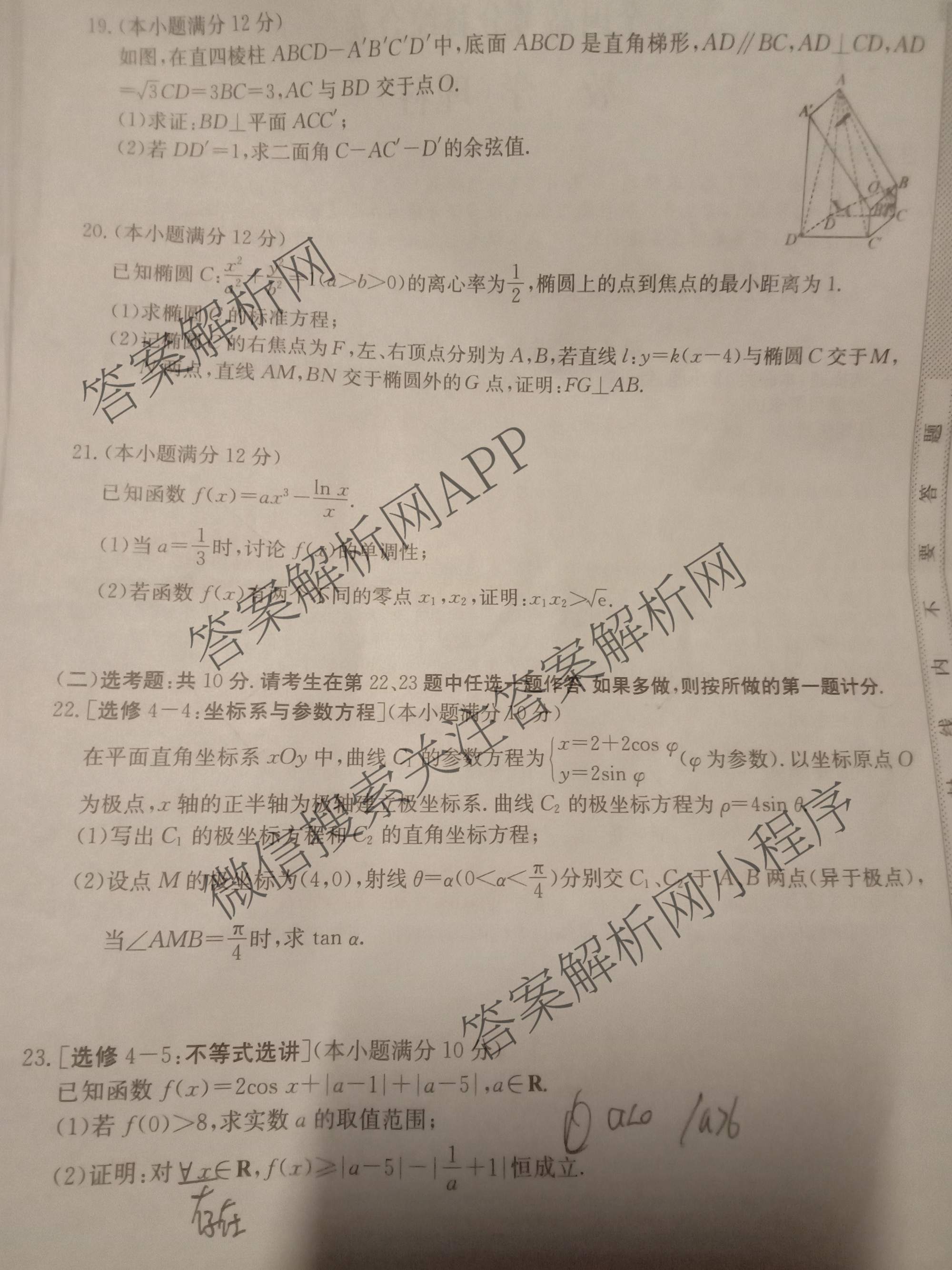 - 2023[全国高考分科综合卷] 理数 LL (一)1答案
