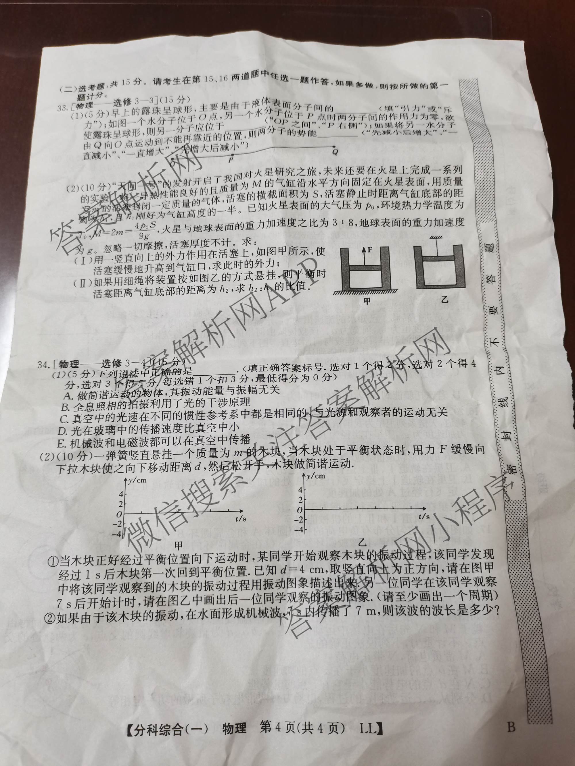 - 2023[全国高考分科综合卷] 物理 LL B(一)1答案