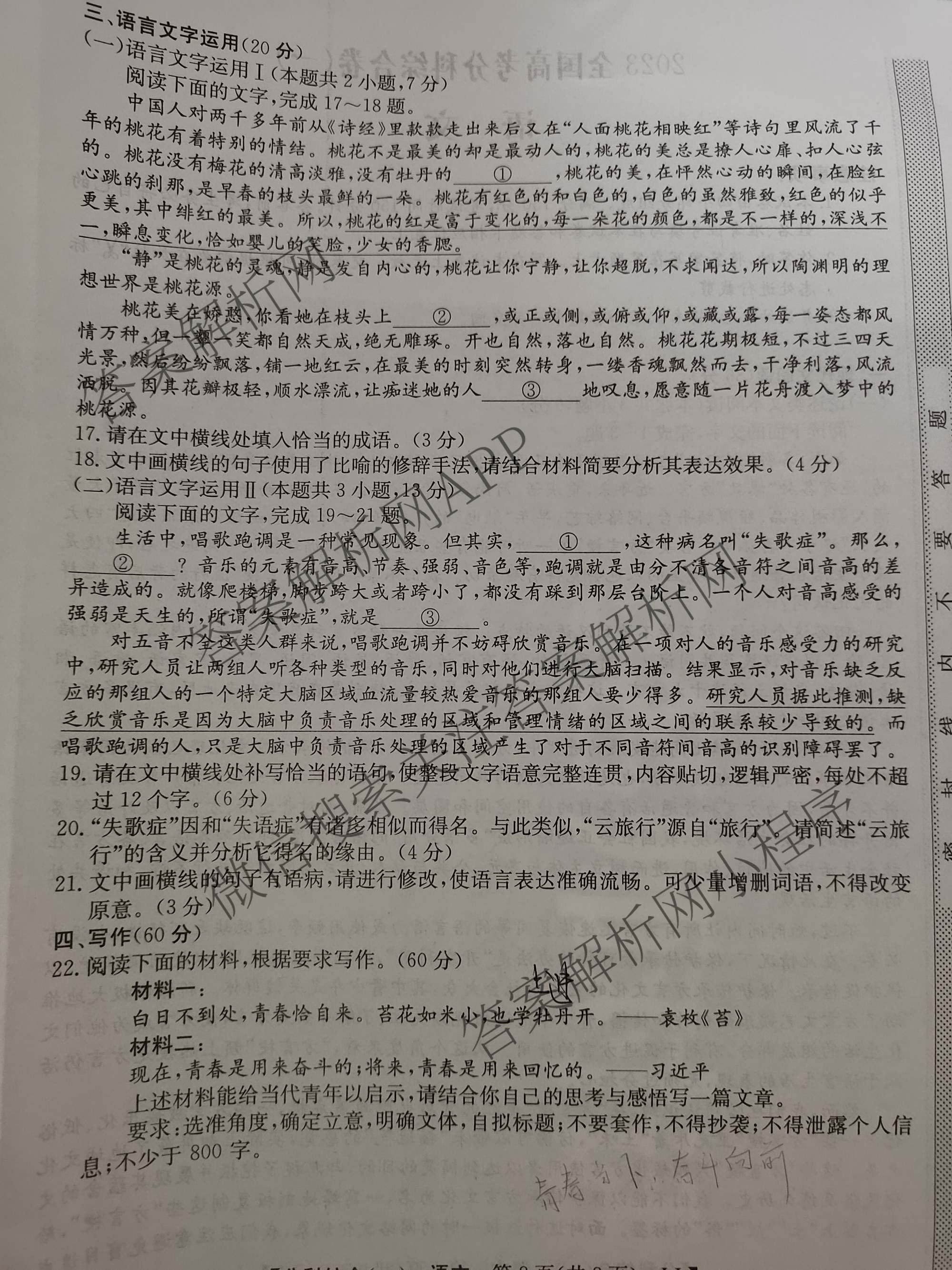 - [高三]2023(全国高考分科综合卷) 语文 LL (一)1答案