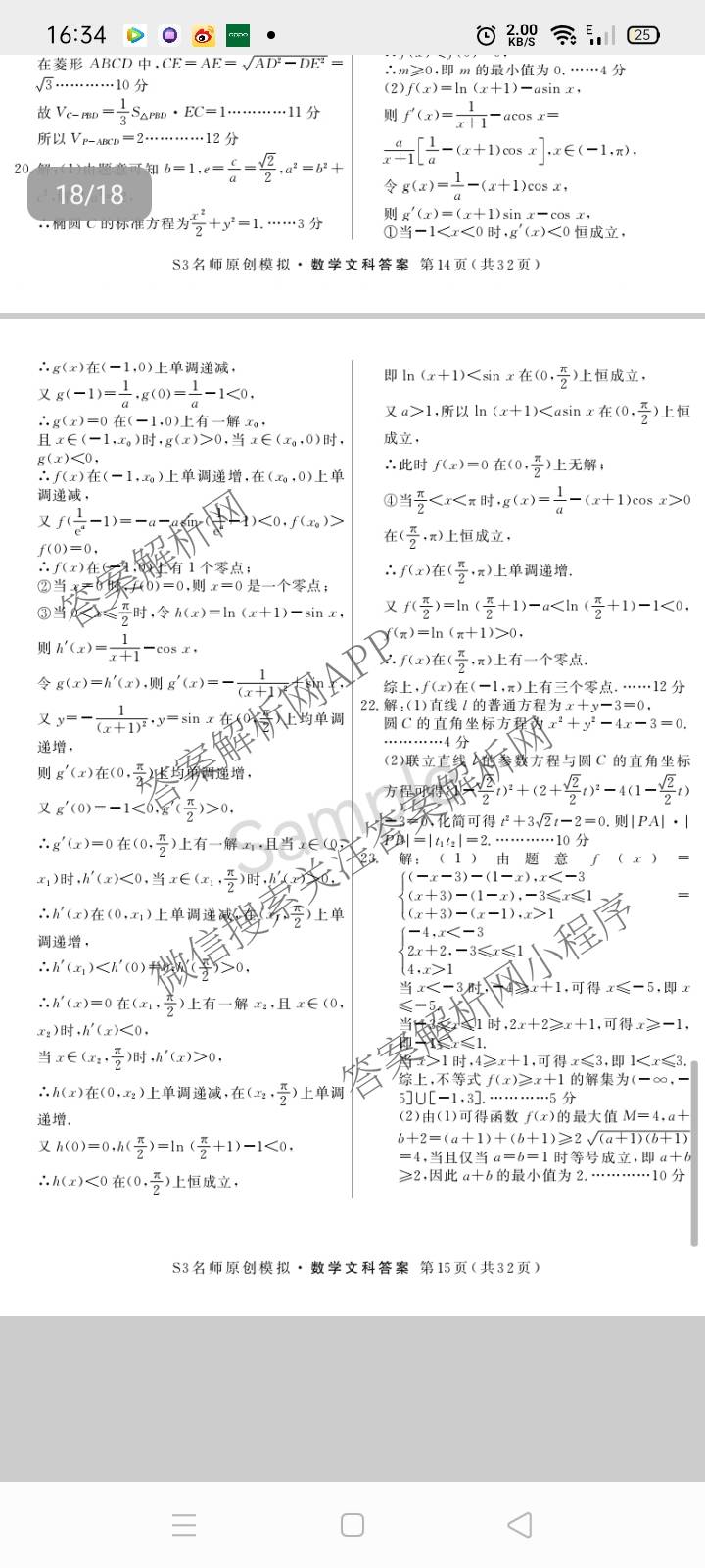 2023届(高三)总复习·S3名师原创模拟文数(三)3答案