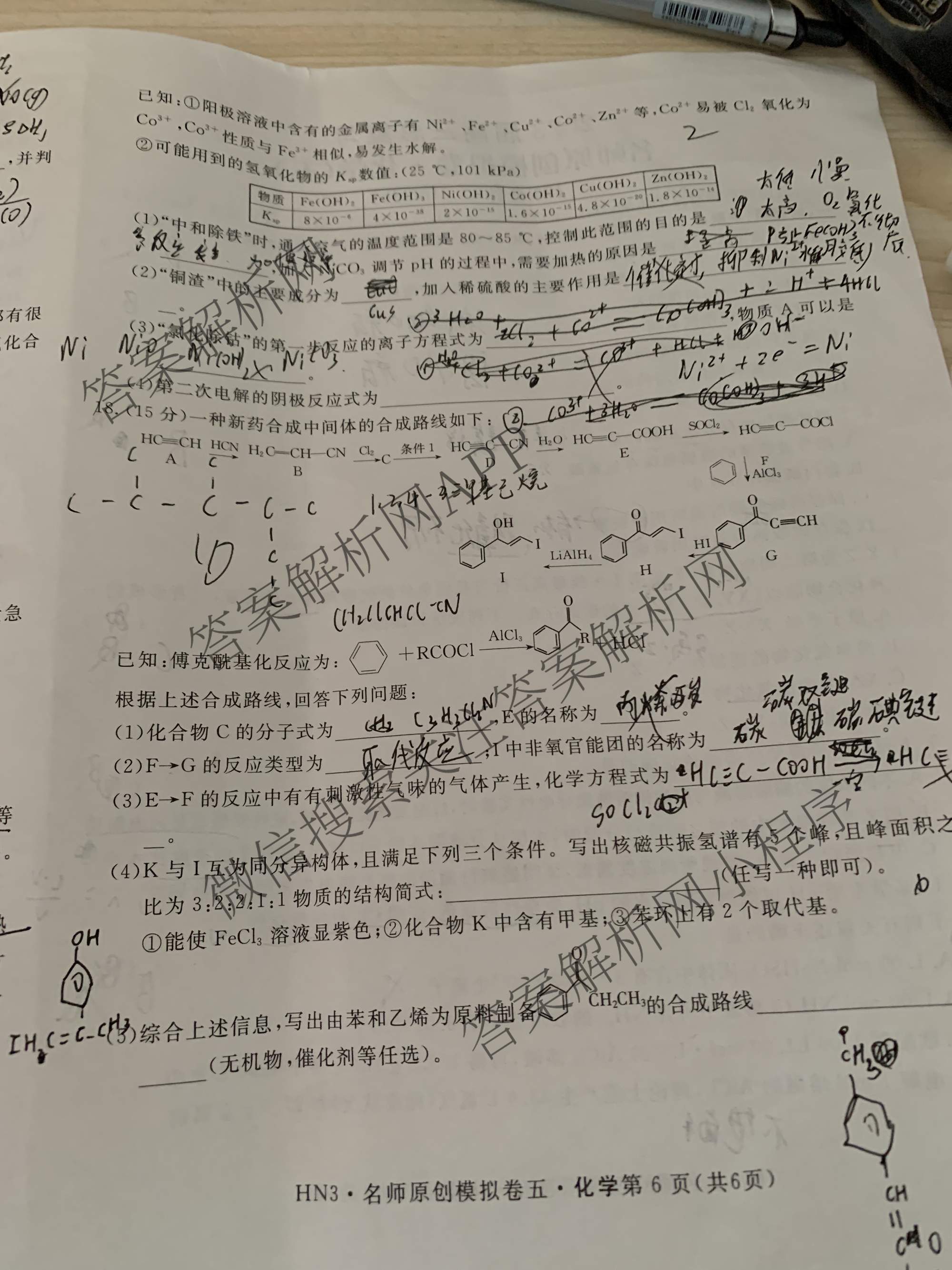 2023届高三总复习·HN3(湖南) 名师原创模拟 化学(五)5试题,目前分科卷答案网已经汇总了2023届高三总复习·HN3(湖南) 名师原创模拟 化学(五)5试题的各科答案和试卷,获取更多高三总复习·名师原创模拟答案解析,请在关注本站。