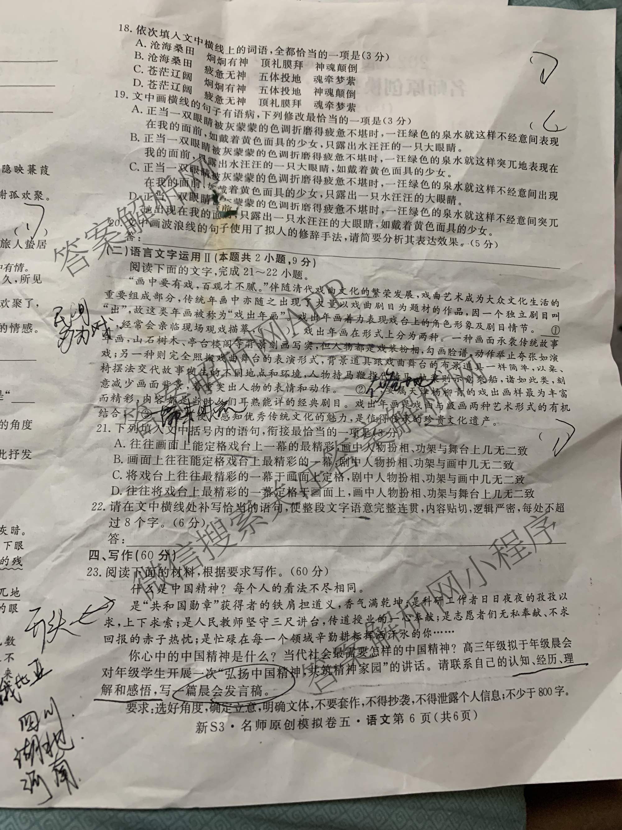 - 2023届(高三)总复习S3G名师原创模拟 语文(五)5答案