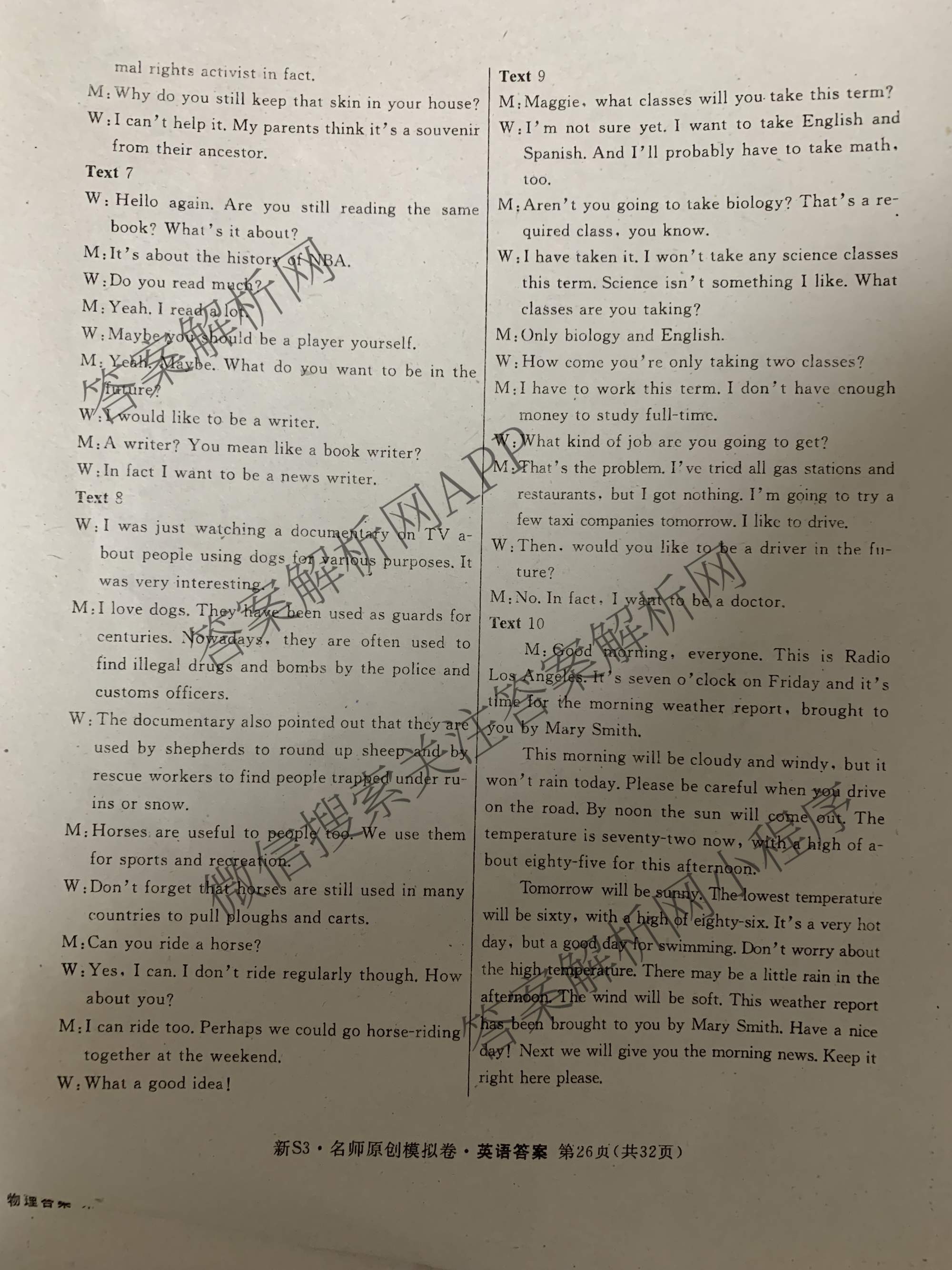 - 2023届(高三)总复习S3名师原创模拟 英语(五)5答案