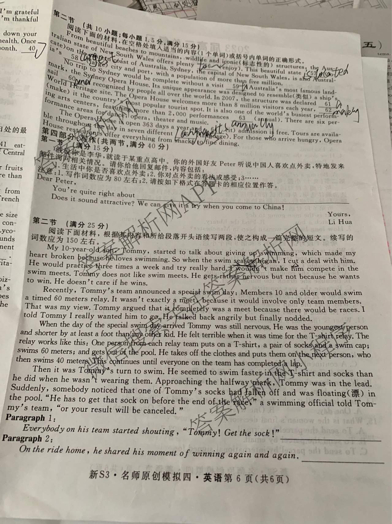 2023届高三总复习·新S3 名师原创模拟英语(四)4试题,目前分科卷答案网已经汇总了2023届高三总复习·新S3 名师原创模拟英语(四)4试题的各科答案和试卷,获取更多高三总复习·名师原创模拟答案解析,请在关注本站。