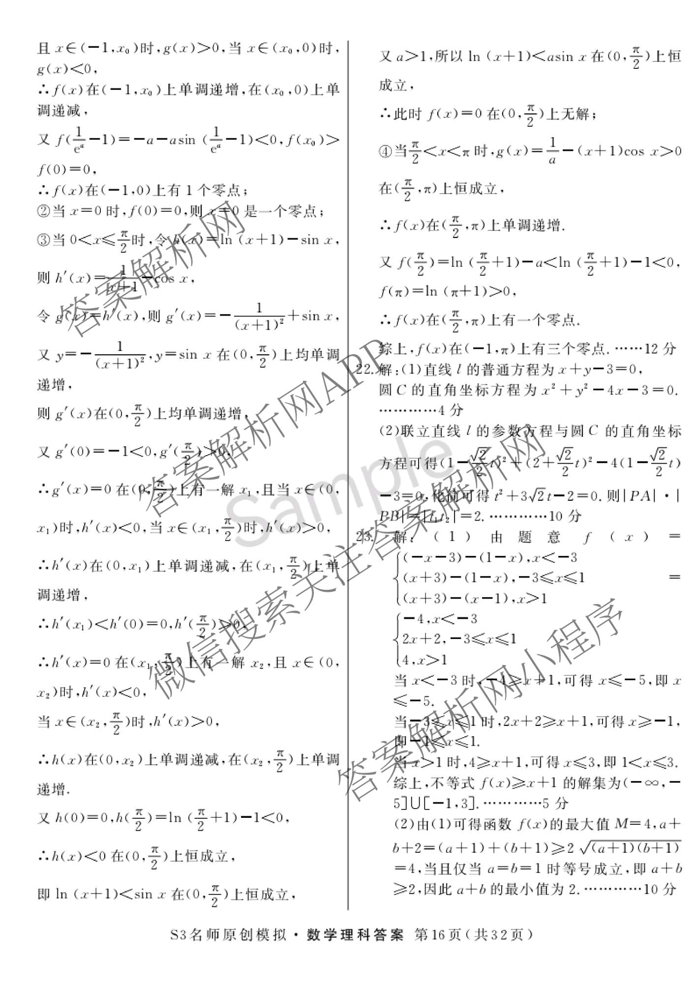 2023届高三总复习·S3名师原创模拟理数(三)3答案,目前分科卷答案网已经汇总了2023届高三总复习·S3名师原创模拟理数(三)3答案的各科答案和试卷,获取更多高三总复习·名师原创模拟答案解析,请在关注本站。