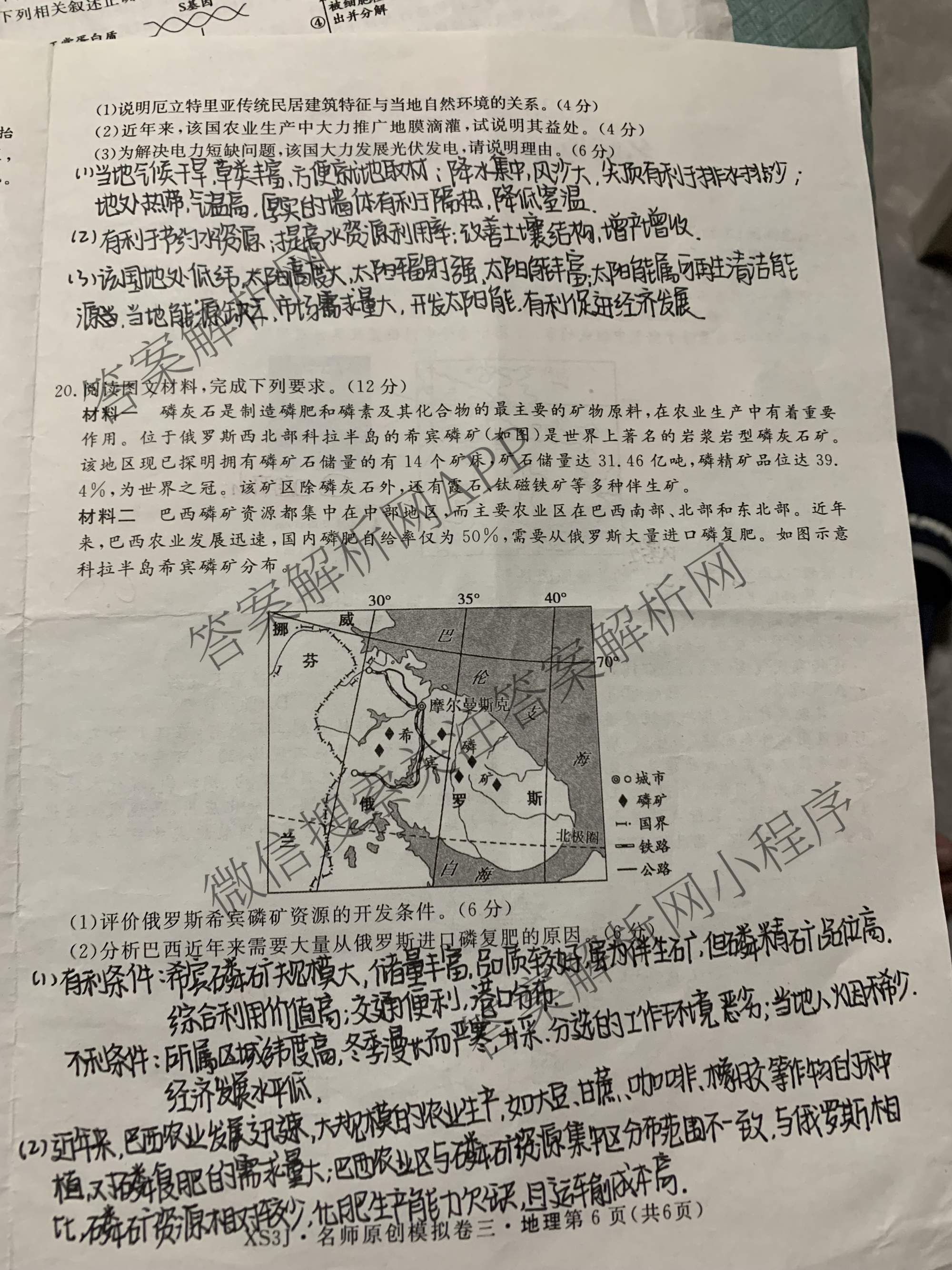 - 2023届高三总复习S3名师原创模拟地理(三)3答案