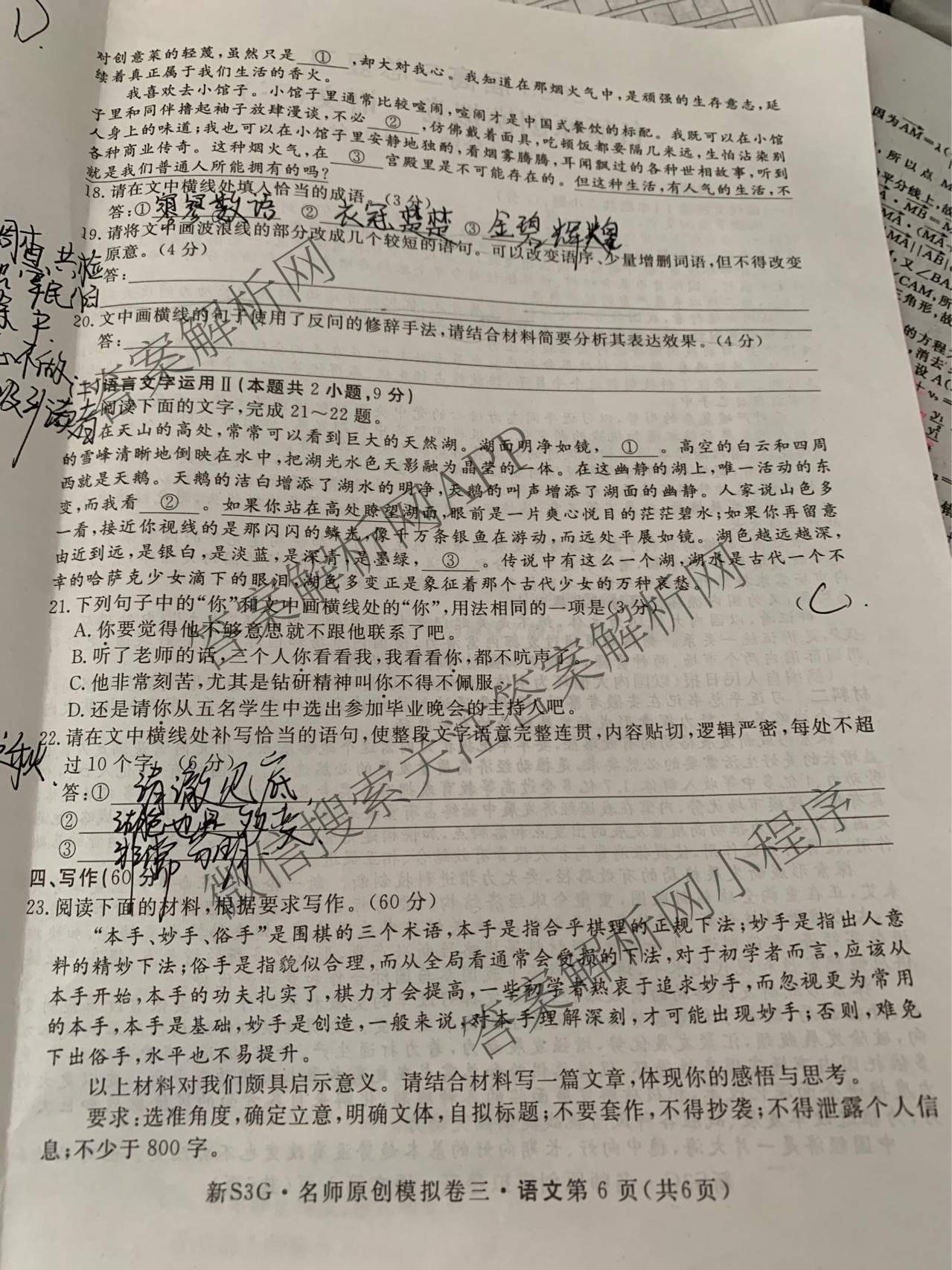 2023届高三总复习·新S3G名师原创模拟语文(三)3试题,目前分科卷答案网已经汇总了2023届高三总复习·新S3G名师原创模拟语文(三)3试题的各科答案和试卷,获取更多高三总复习·名师原创模拟答案解析,请在关注本站。