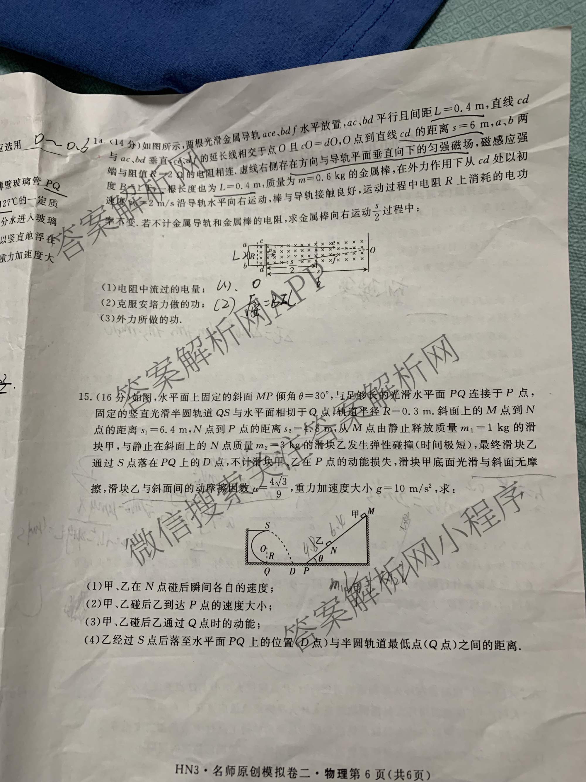 - 2023届[高三]总复习HN3(湖南) 名师原创模拟 物理(二)2答案