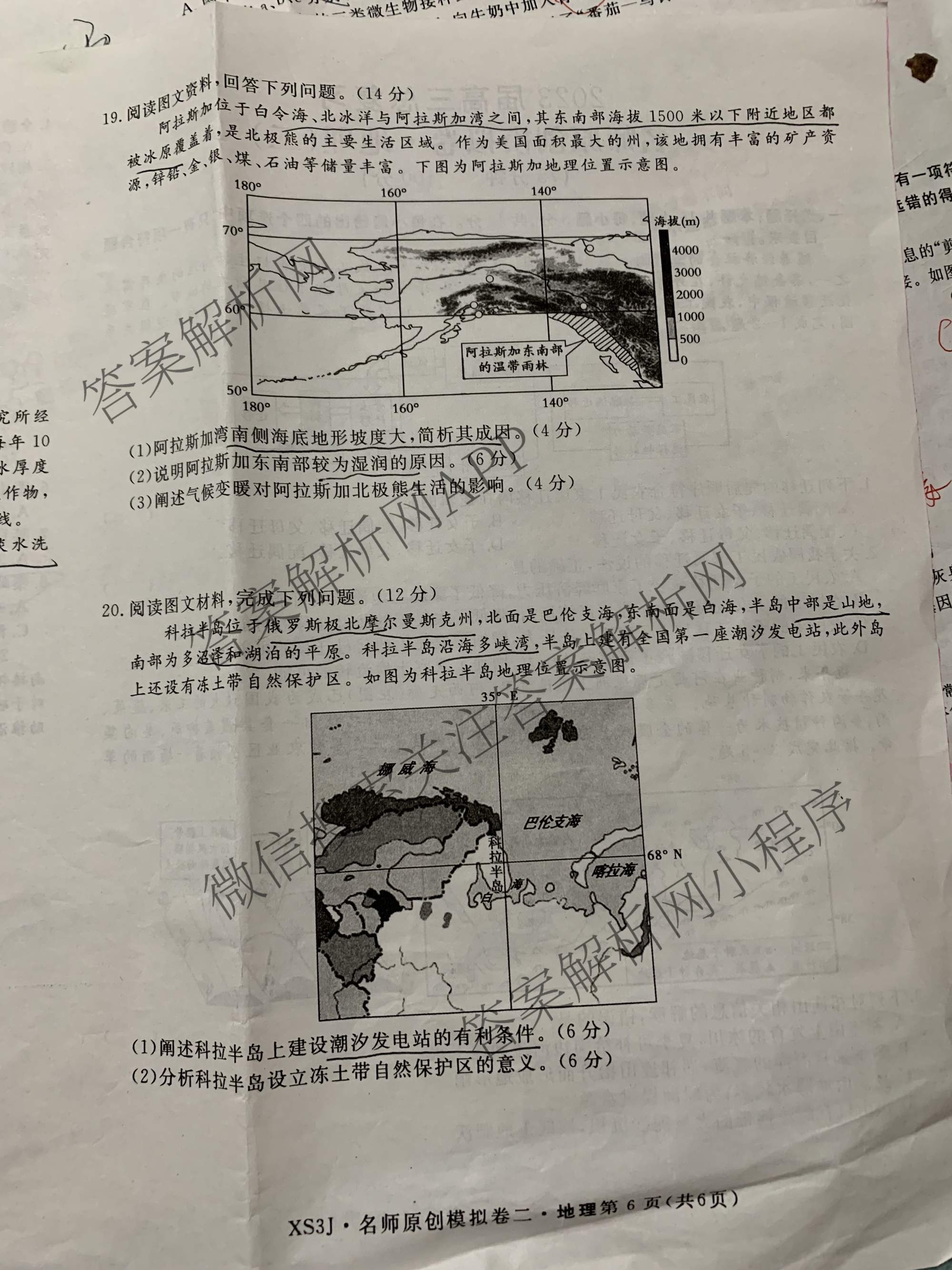 - (高三)2023届总复习XS3J 名师原创模拟 地理(二)2答案