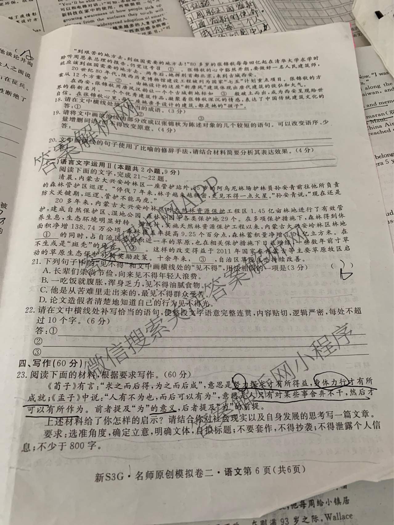 - (高三)2023届总复习·S3G名师原创模拟 语文(二)2答案