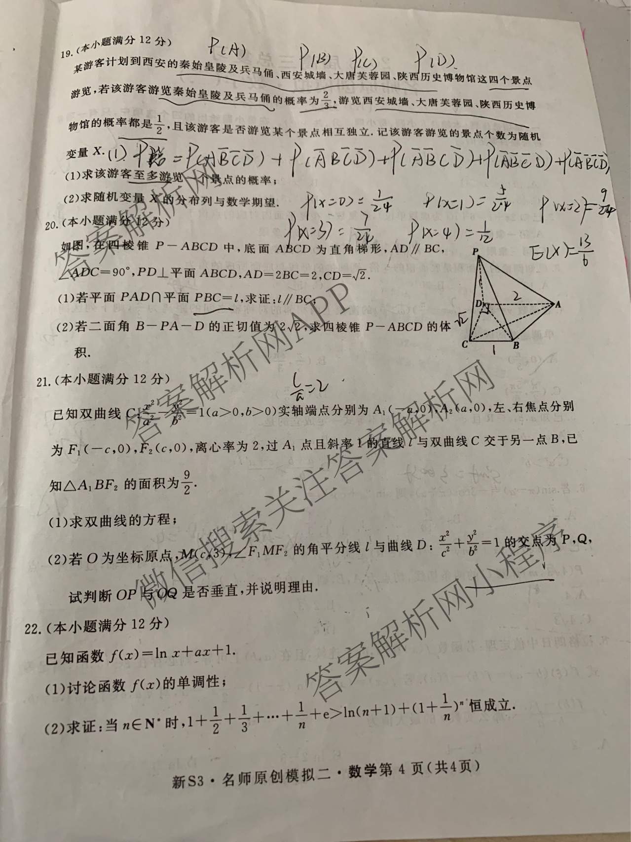 - 2023届[高三]总复习·新S3 名师原创模拟数学(二)2答案