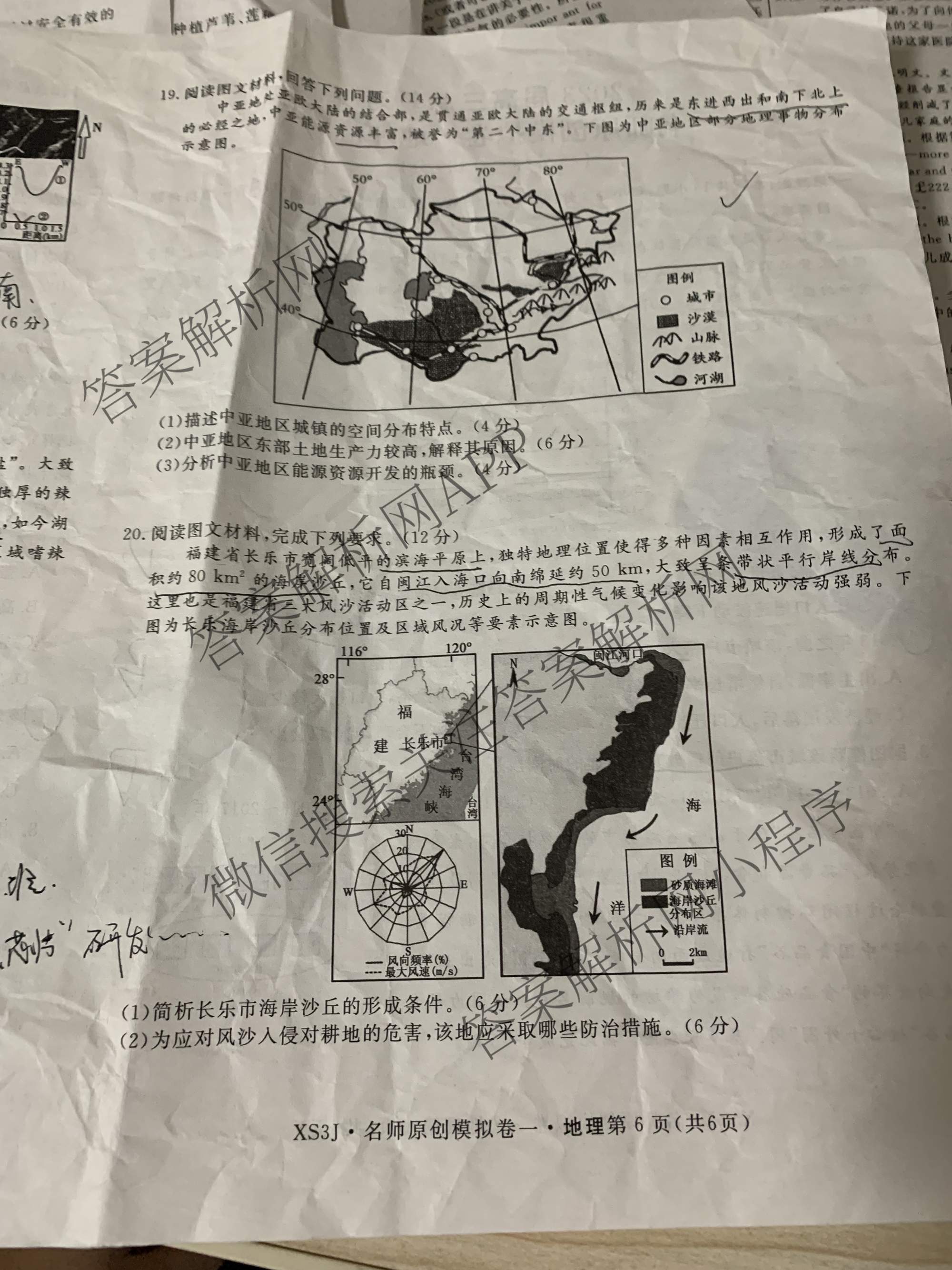 - [高三]2023届总复习·XS3J 名师原创模拟 地理(一)1答案