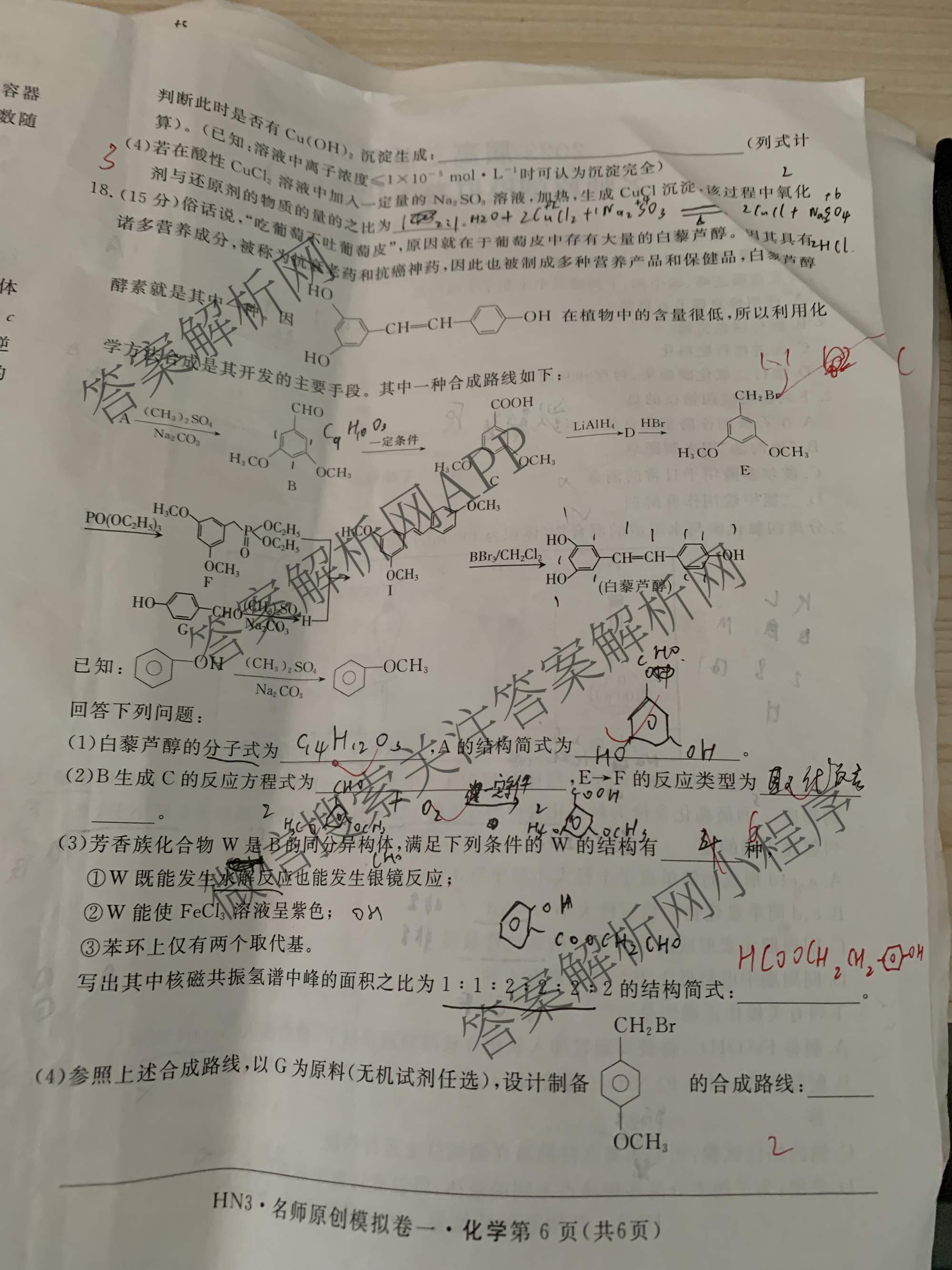 - [高三]2023届总复习HN3(湖南) 名师原创模拟 化学(一)1答案