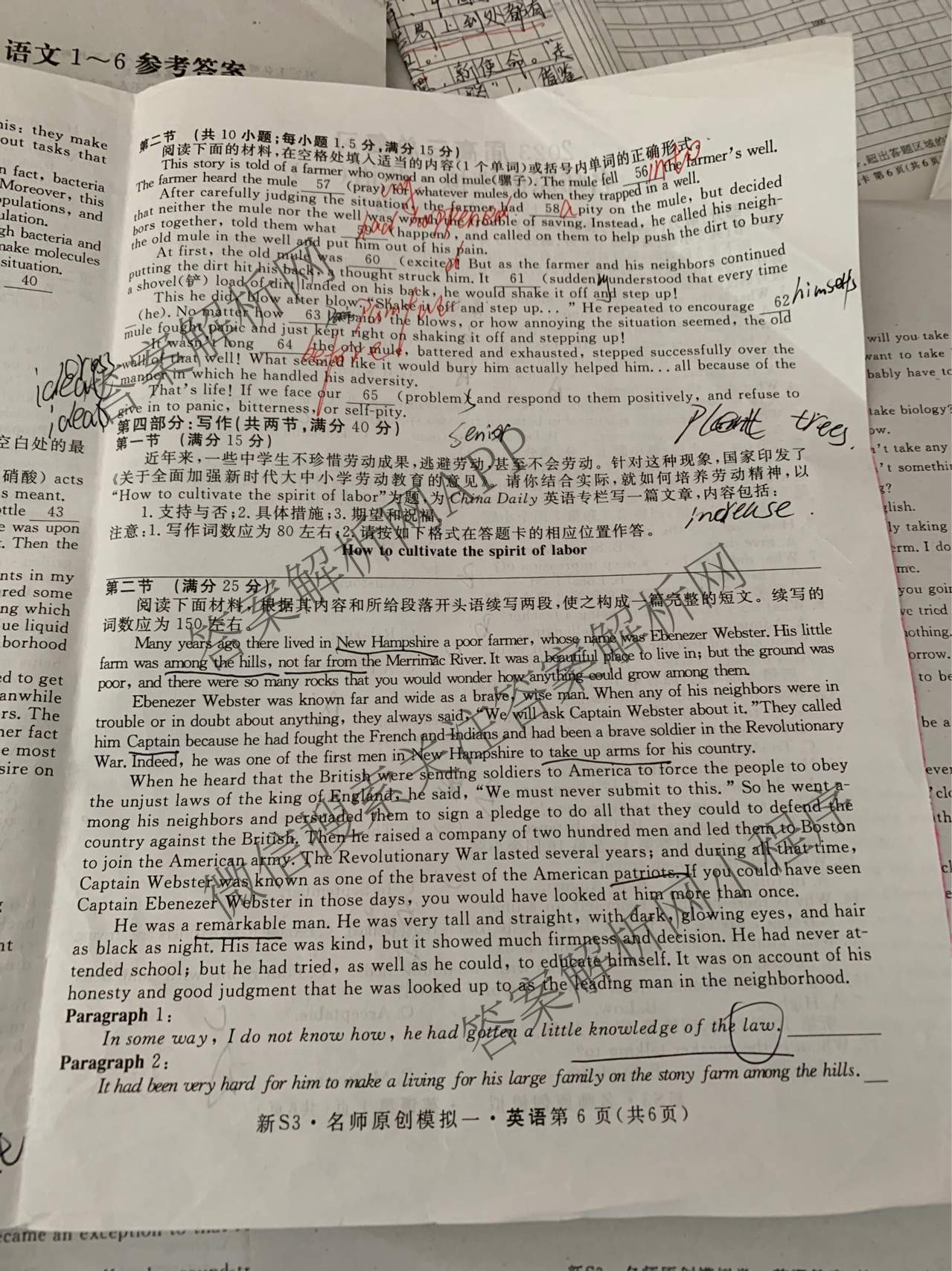 - [高三]2023届总复习新S3 名师原创模拟英语(一)1答案