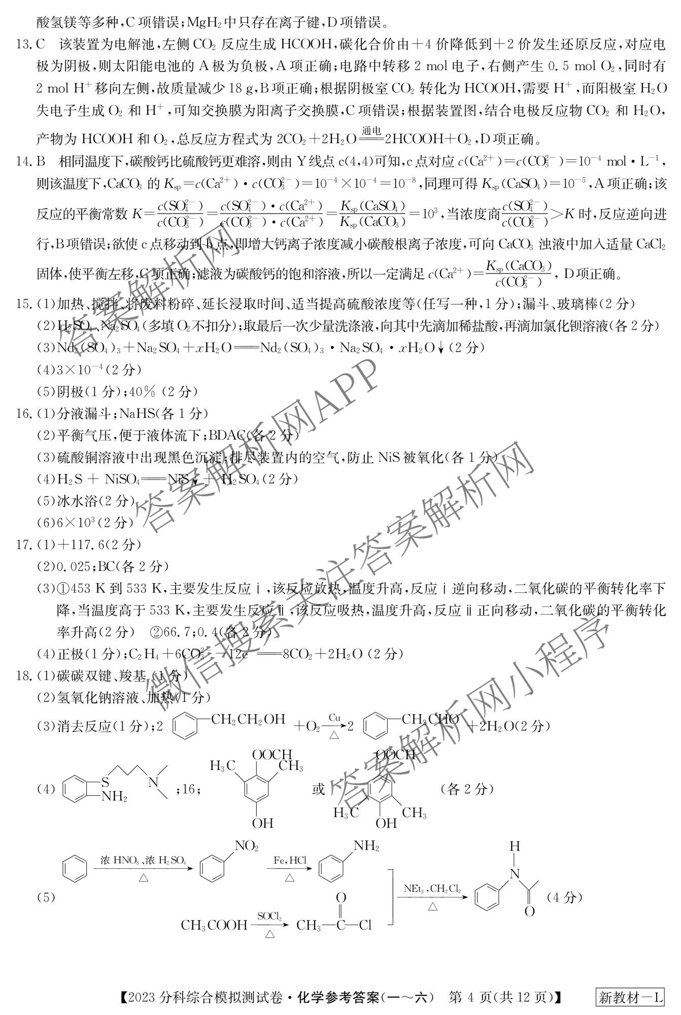 2023届[全国高考分科综合模拟测试卷](二)化学 新教材-L答案