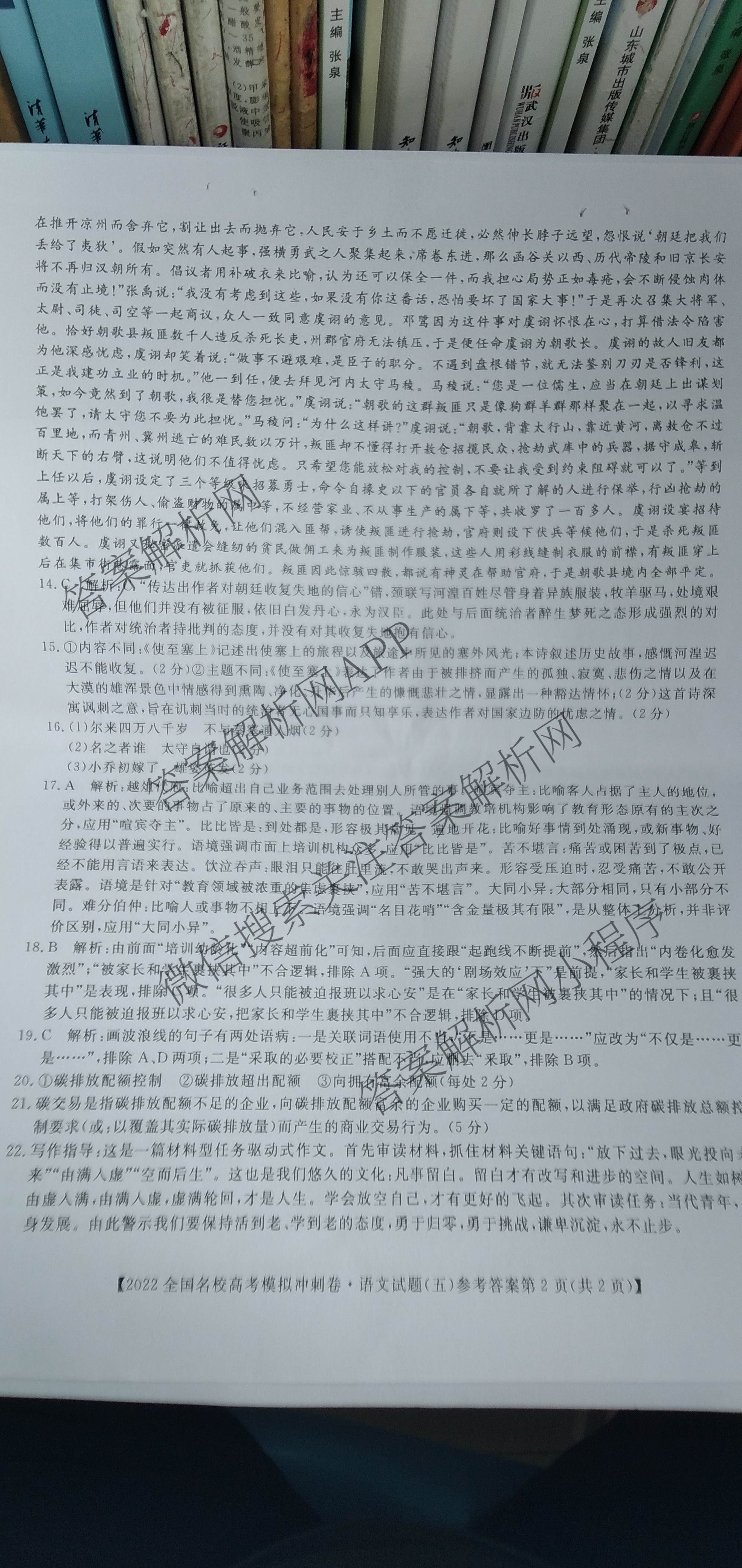 - (华普教育)2022全国名校高考模拟冲刺卷(五)语文答案