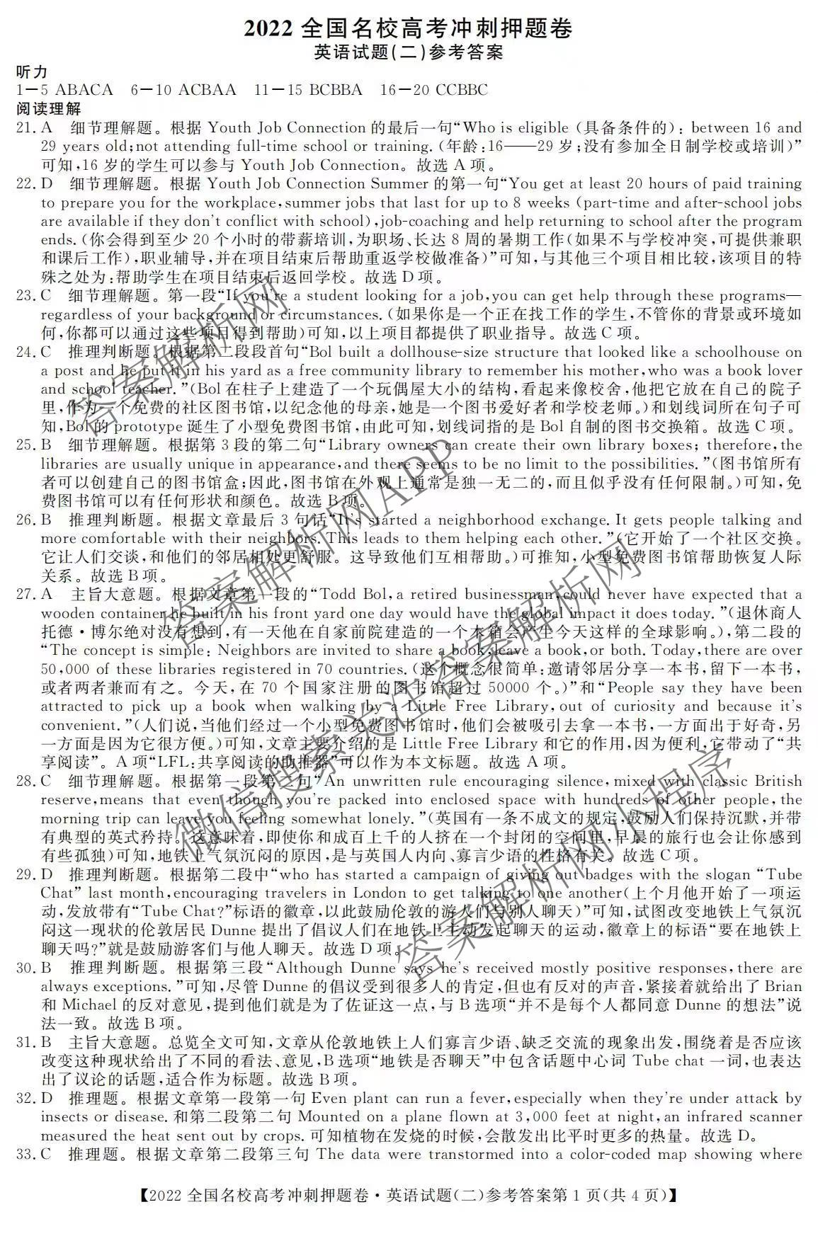 (高三)[华普教育]·2022全国名校高考冲刺押题卷(二)英语答案