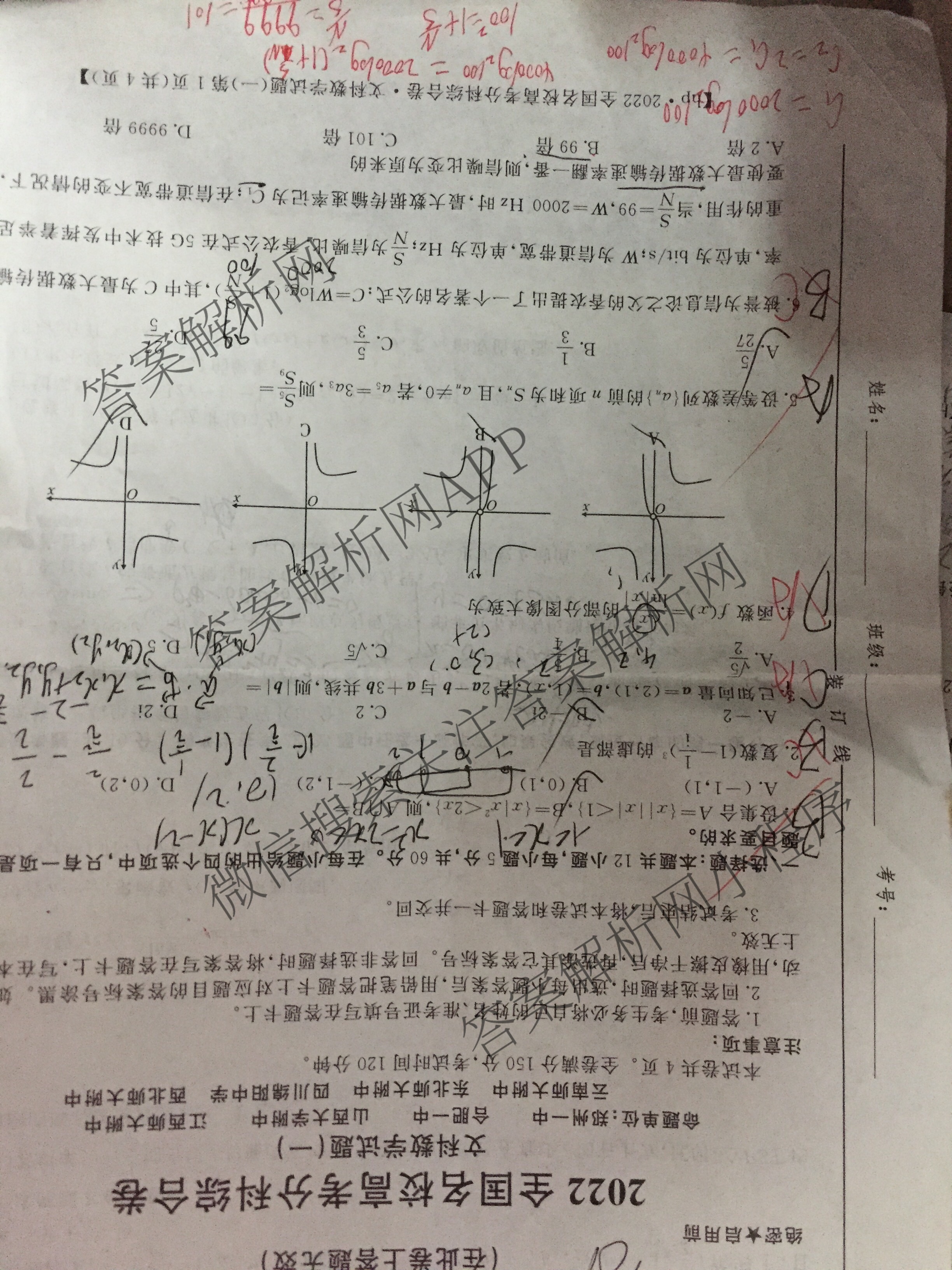 - [高三](华普教育)·2022全国名校高考分科综合卷(一)1理科数学试题