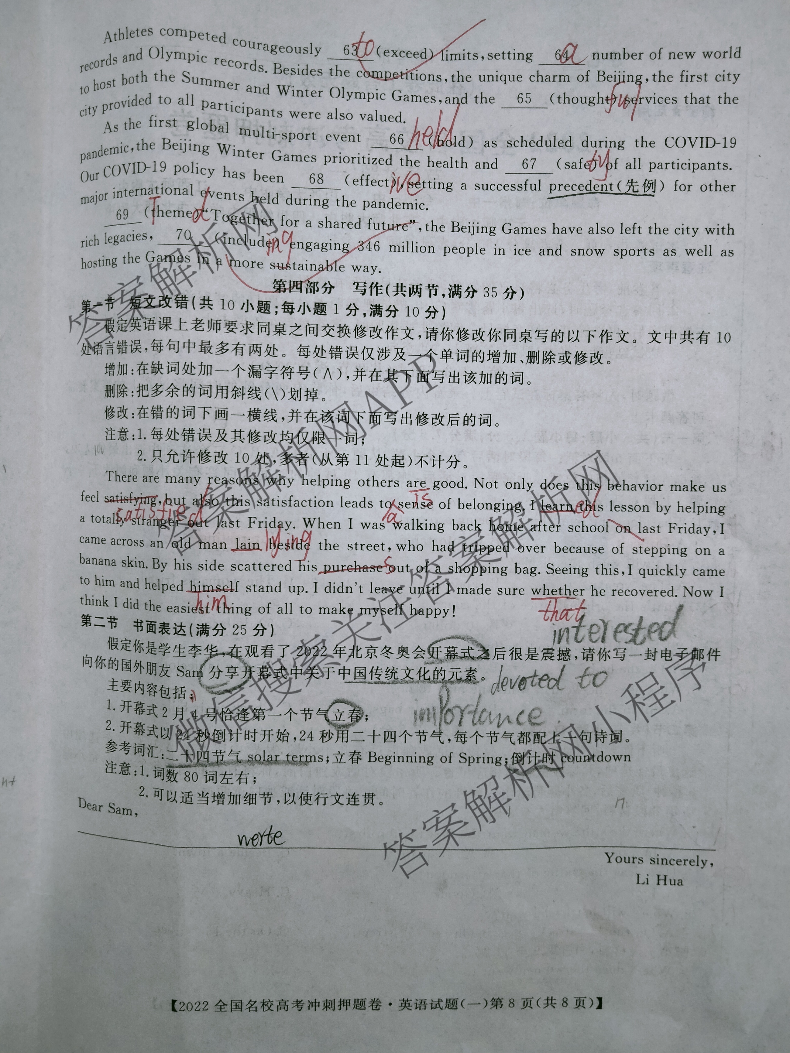 - 华普教育2022全国名校高考冲刺押题卷(一)英语答案