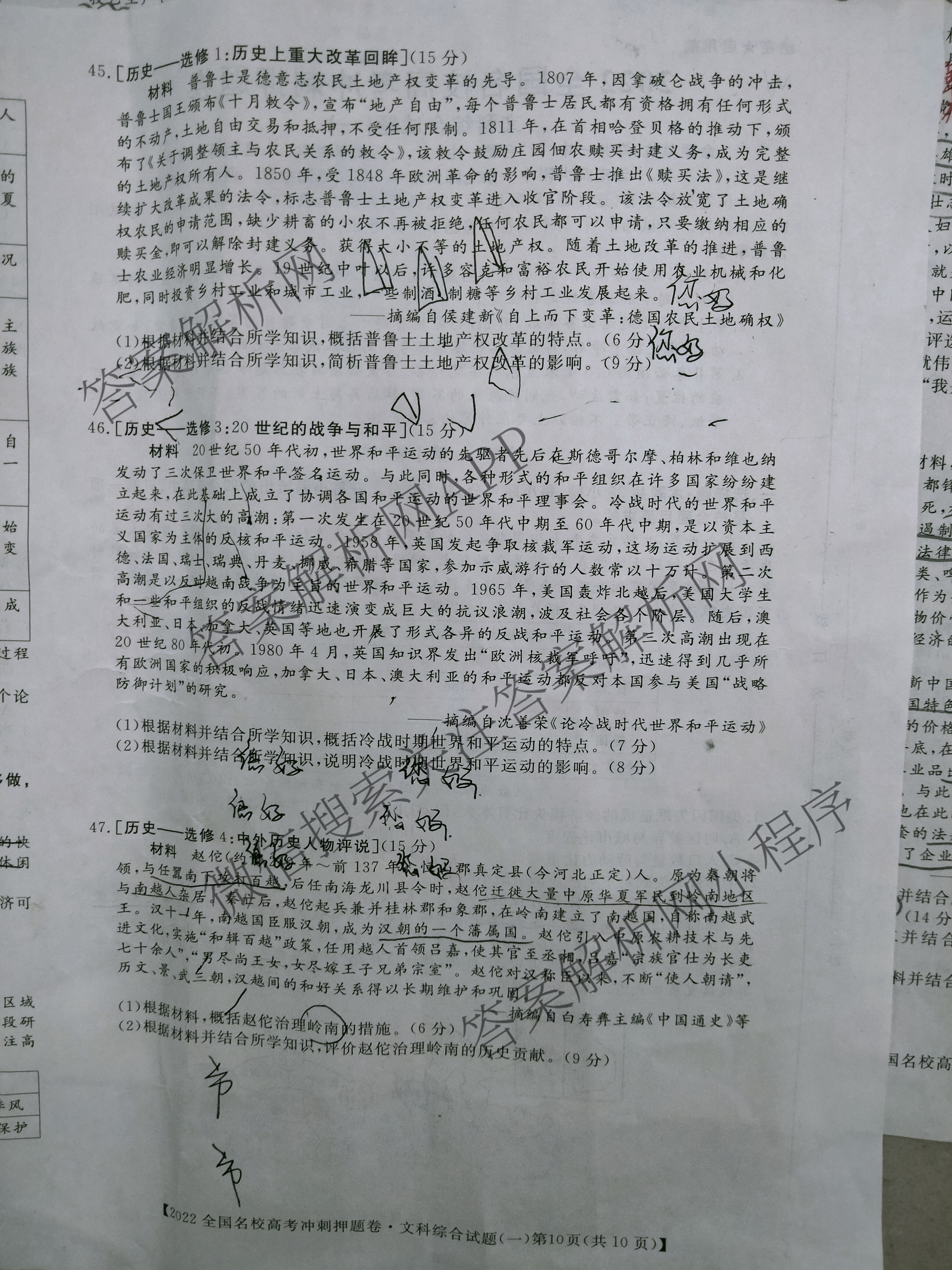 (高三)[华普教育]·2022全国名校高考冲刺押题卷(一)文科综合试题