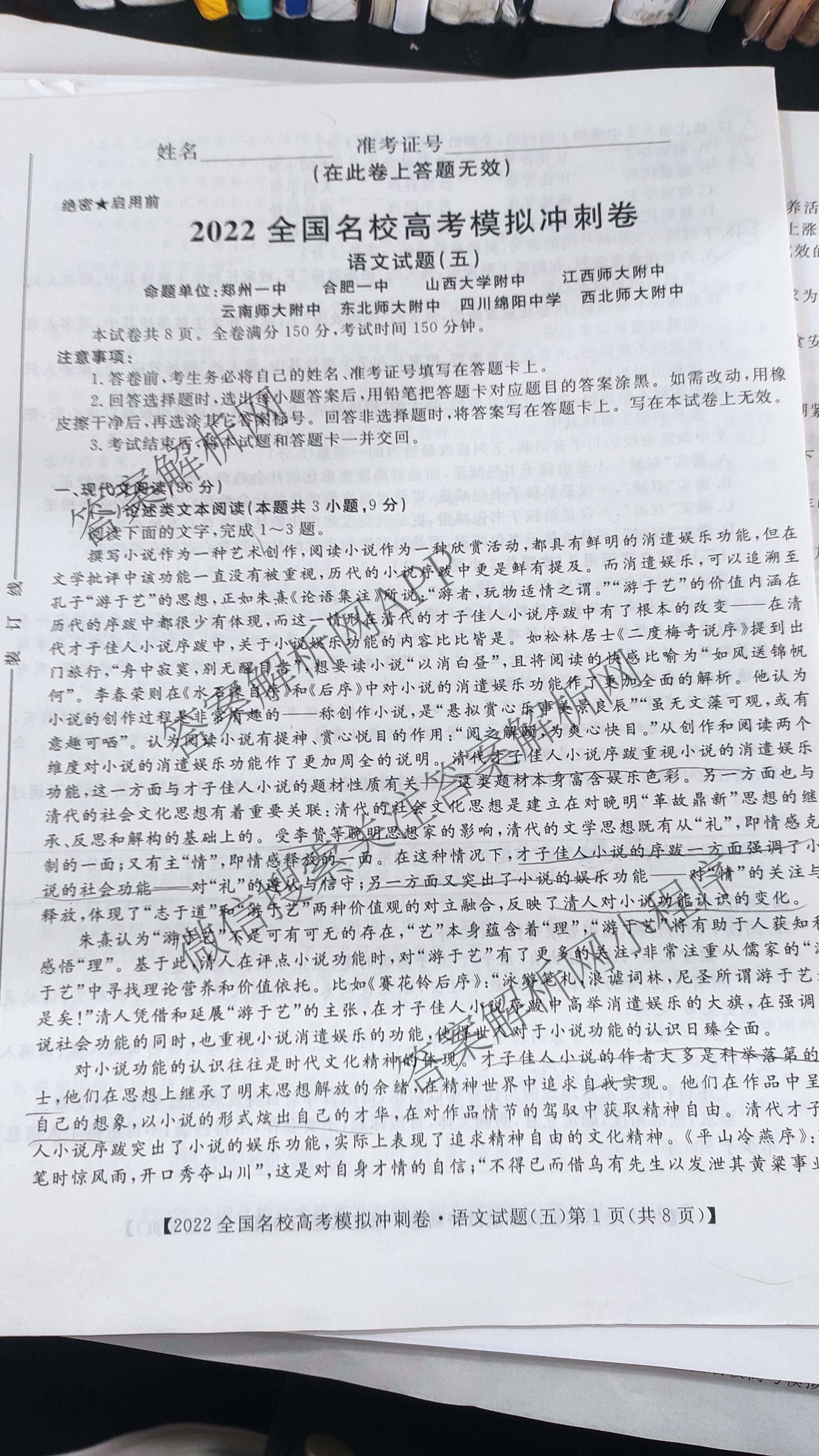 华普教育·2022全国名校高考模拟冲刺卷(五)语文试题,目前分科卷答案网已经汇总了华普教育·2022全国名校高考模拟冲刺卷(五)语文试题的各科答案和试卷,获取更多华普教育答案解析,请在关注本站。