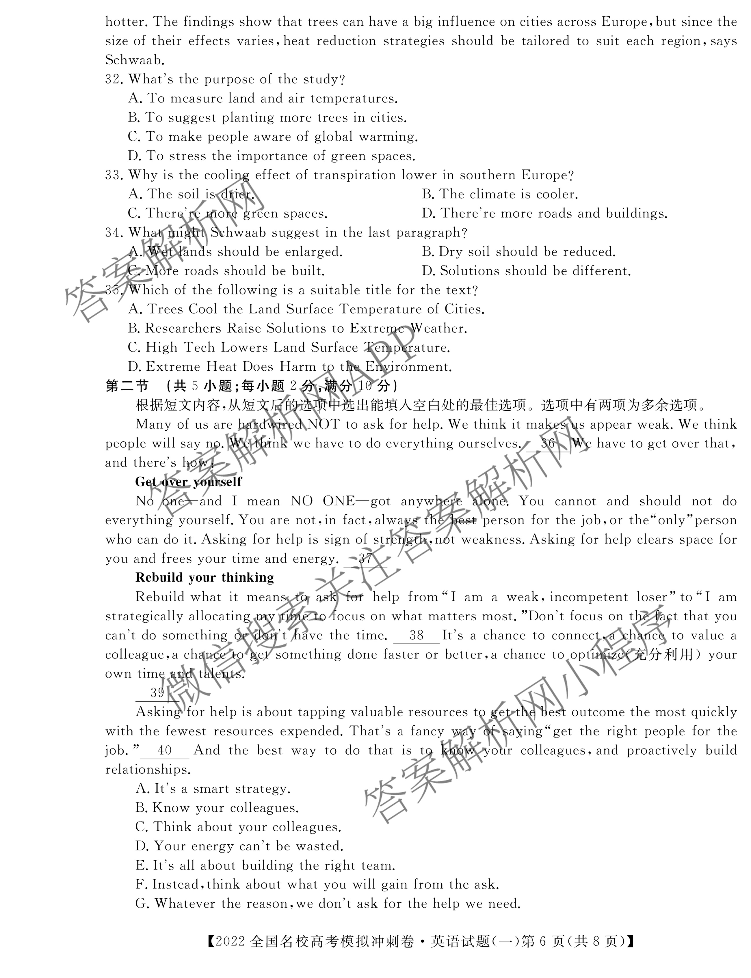 - (华普教育)2022全国名校高考模拟冲刺卷(一)英语答案