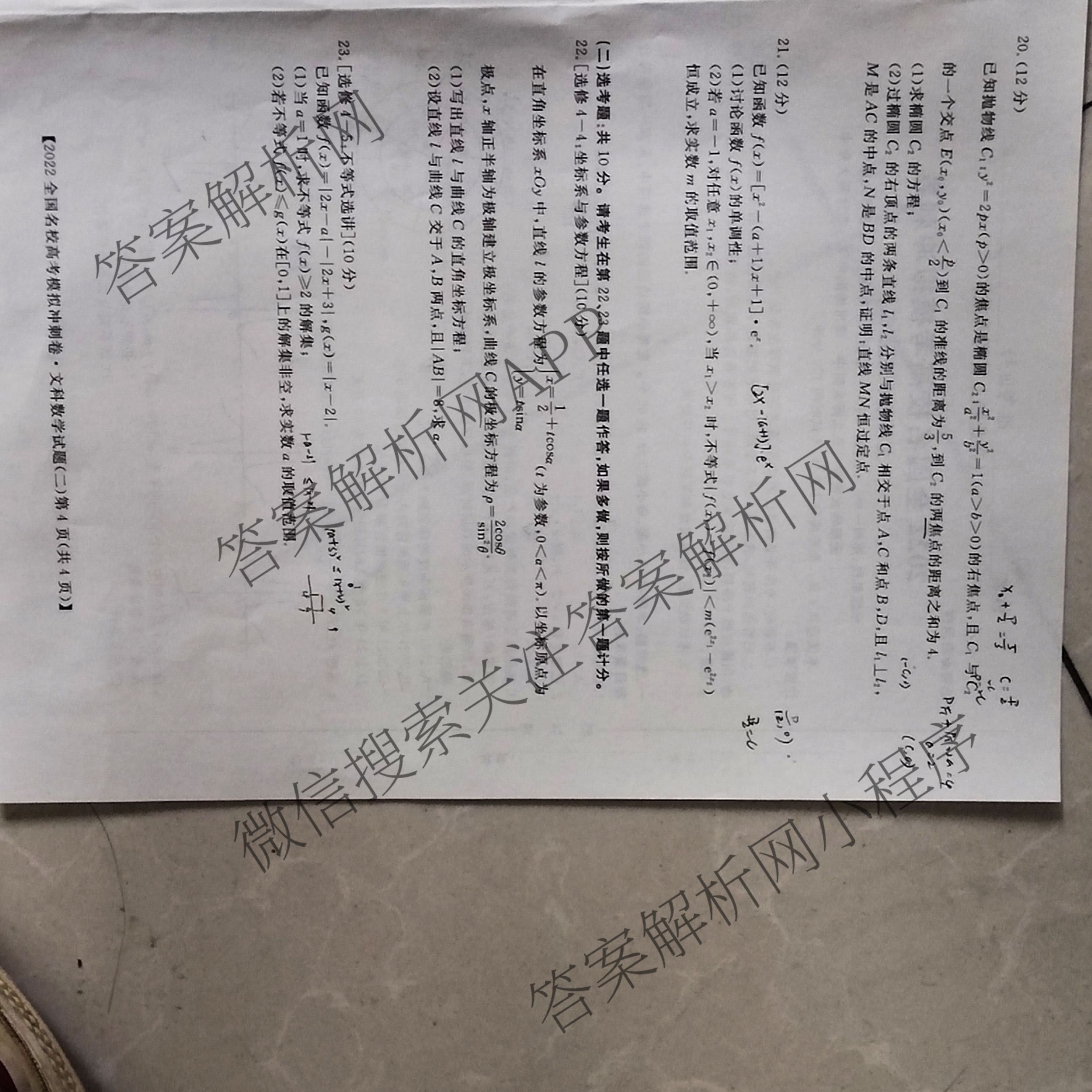 华普教育·2022全国名校高考模拟冲刺卷(二)文科数学试题,目前分科卷答案网已经汇总了华普教育·2022全国名校高考模拟冲刺卷(二)文科数学试题的各科答案和试卷,获取更多华普教育答案解析,请在关注本站。