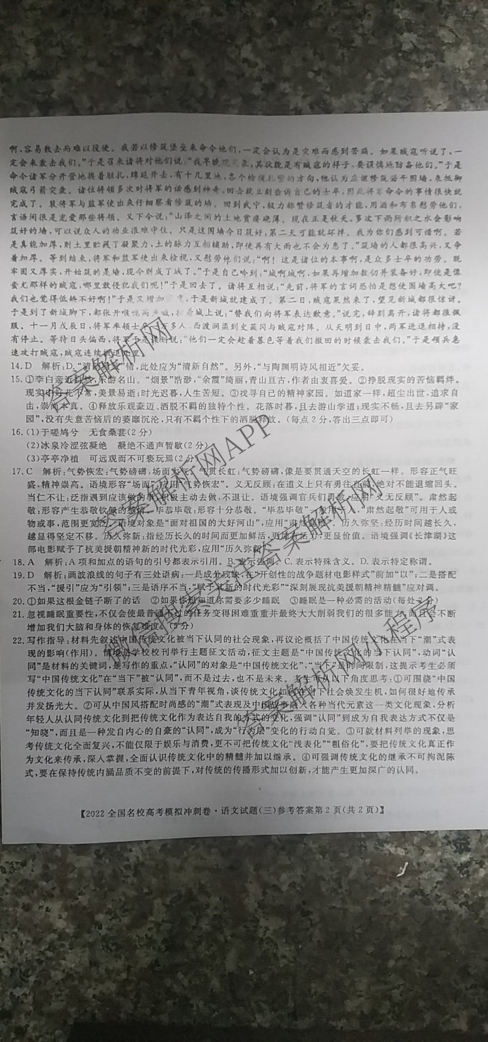 - [高三][华普教育]·2022全国名校高考模拟冲刺卷(三)语文答案