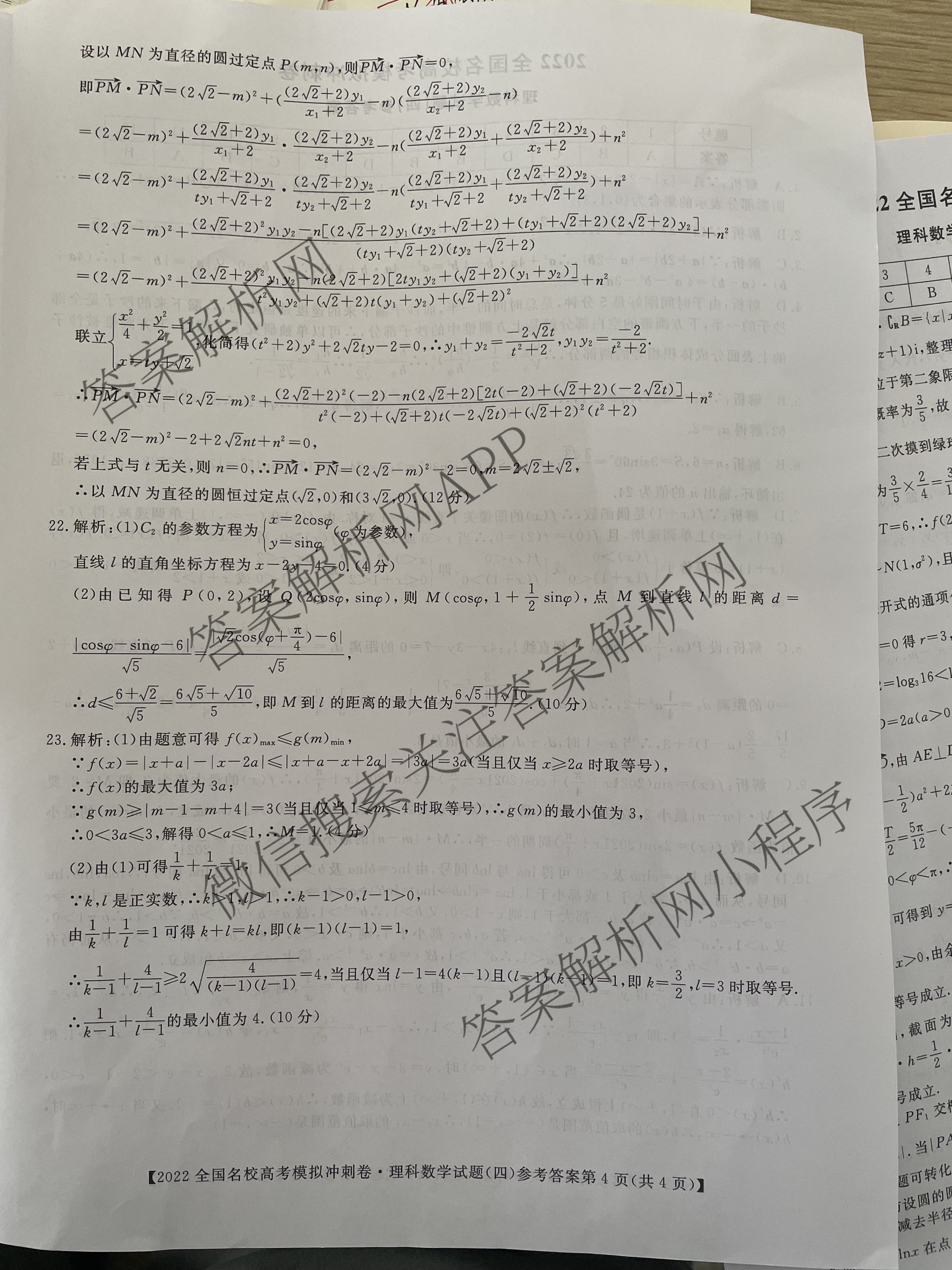 - [高三][华普教育]·2022全国名校高考模拟冲刺卷(四)理科数学答案
