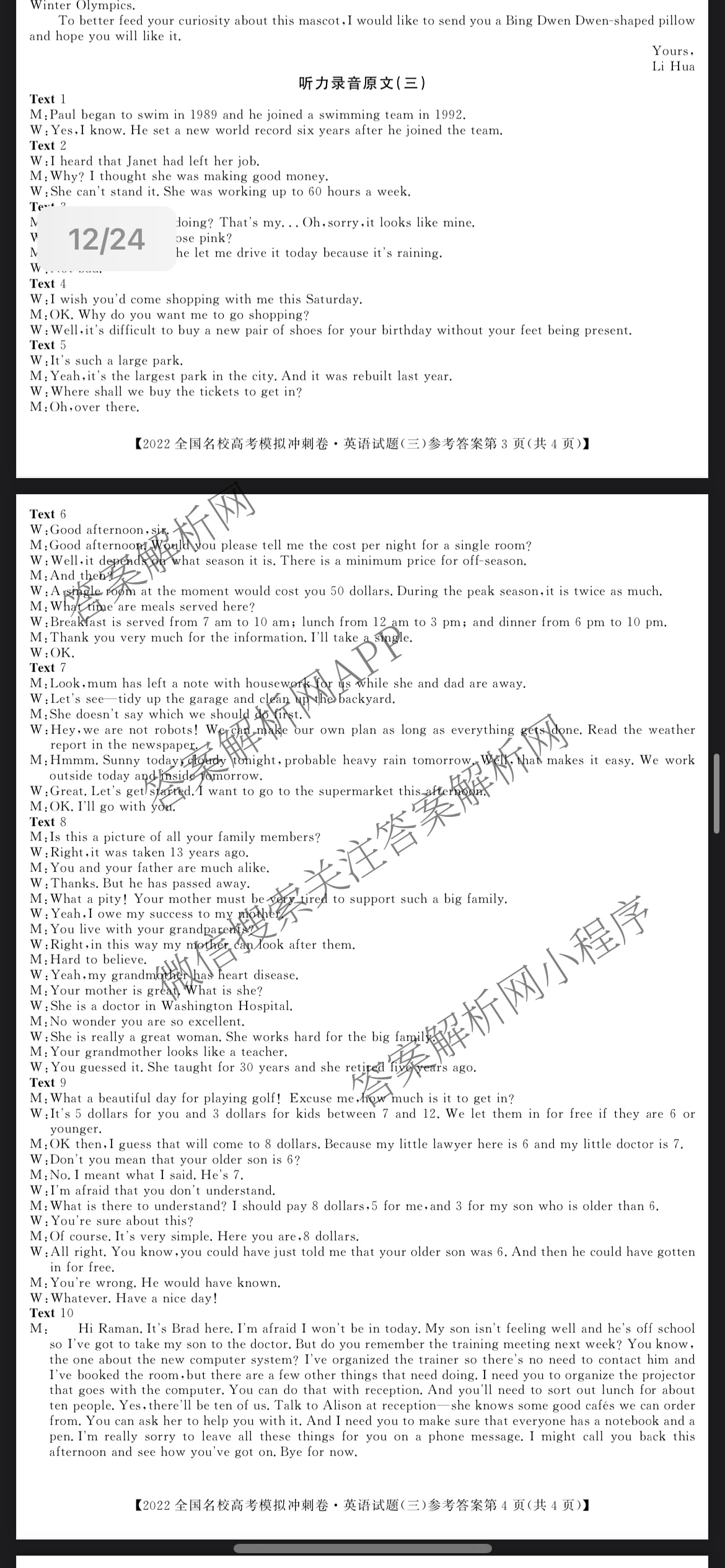 - (华普教育)2022全国名校高考模拟冲刺卷(三)英语答案