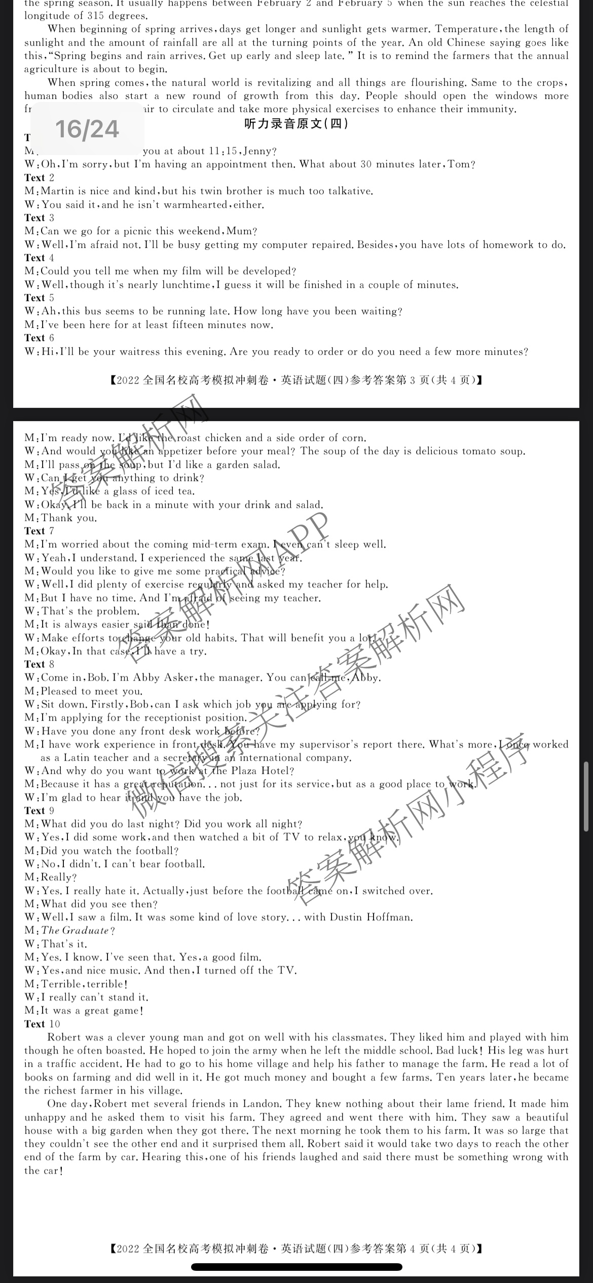 - [高三][华普教育]·2022全国名校高考模拟冲刺卷(四)英语答案